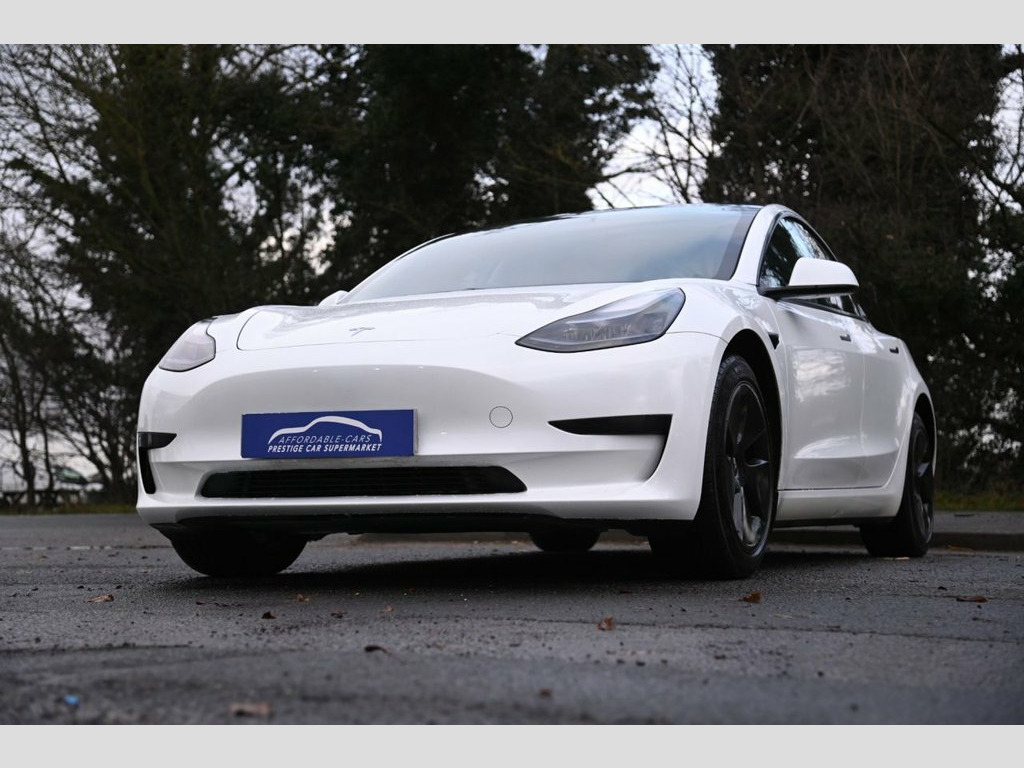 Prestige Car Supermarket in York presents this 2022 Tesla Model 3 Saloon, a refined rear-wheel-drive electric saloon finished in Pearl White with Premium Engineered Material interior in Black. Powered by an advanced electric drivetrain producing 241 bhp and paired with a smooth automatic transmission, this Model 3 delivers responsive performance and a composed driving experience. The exterior is complemented by 18in Aero alloy wheels, LED headlights and tail lights, satin black exterior detailing and a fixed panoramic glass roof with ultraviolet and infrared protection. Inside, the minimalist cabin features 12-way power adjustable front seats with heating for both front and rear, a heated steering wheel, premium seat materials, matt finish trim and graphite seat controls. Technology highlights include the integrated navigation system, digital radio, Bluetooth connectivity, internet streaming, mobile phone app interface and immersive upgraded audio system. Driver assistance and safety features include Autopilot function, adaptive cruise control, lane departure warning, blind spot information, traffic sign recognition, automatic emergency braking, front and rear cross traffic cameras and park assist camera. Practicality is enhanced by dual-zone climate control, heat pump, powerlift boot, inductive wireless charging for two smartphones, multiple USB ports, over-the-air software updates via WiFi and Type 2 public charging compatibility, making this Model 3 a highly specified and Premium Engineered Material - Black, Pearl White, 12-Way Power Adjustable Front and Rear H, 18in Alloy Wheels - Aero, 2 Zone Climate Control, 3x3 Point Rear Seat Belts, ABS - Anti-lock Braking System, Adaptive Cruise Control, Adaptive Steering, Additional USB-A Port - Glove Compartmen, Air Conditioning, Airbags - Curtain, Airbags - Driver, Airbags - Passenger, Airbags - Side, Audio Remote Control, Audio System with 8 Speakers and Limited, Auto Dimming - Power Folding - Heated Si, Automated High-Beam Assist, Automatic Emergency Braking, Autopilot Function, Blind Spot Information, Bluetooth Connection, Body Coloured Bumpers, Centre Console with Storage - 4 USB Port, Collision Avoidance, Custom