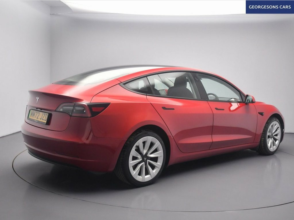 This Tesla Model 3 RWD is an all-electric saloon powered by a rear-wheel-drive setup and automatic transmission, delivering smooth acceleration and efficient zero-emissions driving. With one owner from new, it combines strong range capability with Tesla's minimalist design and advanced technology. It is equipped with a panoramic glass roof, satellite navigation, Bluetooth and DAB radio. Manoeuvring is supported by a reverse camera, 360° camera system and parking sensors. Comfort features include climate control and electric heated memory seats. Driver assistance systems include adaptive cruise control with speed limiter, lane assist and push-button start, making this a well-specified and highly usable electric saloon. 12-Way Power Adjustable Front and Rear H, 2 Zone Climate Control, 3x3 Point Rear Seat Belts, ABS - Anti-lock Braking System, Adaptive Cruise Control, Adaptive Steering, Additional USB-A Port - Glove Compartmen, Air Conditioning, Airbags - Curtain, Airbags - Driver, Airbags - Passenger, Airbags - Side, Audio Remote Control, Audio System with 8 Speakers and Limited, Auto Dimming - Power Folding - Heated Si, Automated High-Beam Assist, Automatic Emergency Braking, Autopilot Function, Blind Spot Information, Bluetooth Connection, Body Coloured Bumpers, Centre Console with Storage - 4 USB Port, Collision Avoidance, Custom Driver Profiles, Daytime Running Lights - LED, Digital Radio, DVD, Electric