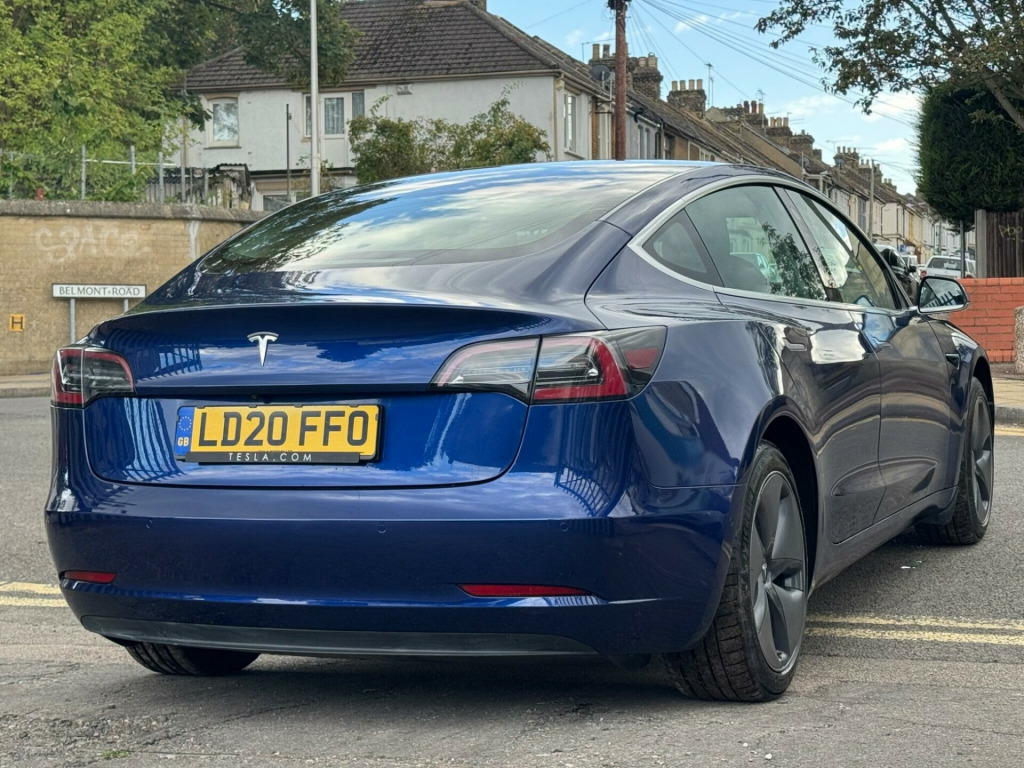 ONE FORMER KEEPER, MOT TILL JULY 2026. VISIT OUR WEBSITE FOR UPDATED STOCK WWW.CARZ4LESS.CO.UKThis 2020 Tesla Model 3 Standard Range Plus boasts a clear vehicle history check, ensuring peace of mind for its next owner, with its MOT valid until July 2026. As an electric vehicle, it offers a substantial battery total capacity of 53 kWh, providing a maximum range of 254 miles when new. This Model 3 is equipped with notable features including Blind Spot Information with Blind Spot Assistance, Rear Parking Sensors with Parking Assistance, Keyless Go with Keyless Entry, Adaptive Cruise Control, and LED Headlights.The charging capabilities of this Tesla Model 3 are impressive, with a full charge at home using a 7kW charger taking approximately 7 hours and 10 minutes, and a rapid charge from empty to 80% achievable in just 29 minutes at a public charging station. These features highlight how this vehicle offers a convenient and efficient electric driving experience, making it a compelling choice for those seeking modern technology and a significant driving range.. 12-Way Power Adjustable Heated Front Seats, 18in Alloy Wheels - Aero, 2 Zone Climate Control, 3x3 Point Rear Seat Belts, ABS - Anti-lock Braking System, Adaptive Cruise Control, Adaptive Steering, Air Conditioning, Airbags - Curtain, Airbags - Driver, Airbags - Passenger, Airbags - Side, Audio Remote Control, Audio System with 8 Speakers and Limited Immersive Sound, Auto Dimming - Power Folding - Heated Side Mirrors, Automated High-Beam Assist, Automatic Emergency Braking, Autopilot Function, Blind Spot Information, Bluetooth Connection, Body Coloured Bumpers, Centre Console with Storage - 4 USB Ports and Docking for 2 Smartphones, Collision Avoidance, Custom Driver Profiles, DVD, Daytime Running Lights - LED, Digital Radio, Electric Hinged Side Doors - Front, Electric Hinged Side Doors - Rear, Electrically Adjustable Drivers Seat, Electrically Adjustable Passenger Seat, Electrically Adjustable Steering Column - Tilt-Telescopic, Fixed Panoramic Glass Roof, Front Armrest, Front Cross Traffic Camera, Front Electric Windows, Front Fog Lights, Front Head Restraints, Front Parking Sensor, Height Adjustable Drivers Seat, Interior Carpeting, Internet Connection, Isofix Child Seat Anchor Points, Keyless Go, LED Foglights, LED Headlights, Lane Departure Warning, Map and Reading Lights, Media Storage, Mobile Phone App Interface, Navigation System, OEM Sound System, Park Assist Camera, Power Steering - Speed Sensitive, Premium Seat Material and Trim, Radio - AM-FM - Internet Streaming, Rear Cross Traffic Camera, Rear Electric Windows, Rear Headrests, Rear Parking Sensor, Remote Central Locking, Reverse Parking Aid, Seats - Heated Front, Service Indicator, Software Updates over WIFI, Steer-By-Wire Technology, Steering Wheel Mounted Controls, Telephone, Tinted Glass Roof with Ultraviolet and Infrared Protection, Traction Control, Traffic Sign Recognition, Trip Computer, Type 2 Public Charging Connector, Tyre Pressure Monitoring System, USB-iPod Interface, Upgraded Audio - Immersive Sound.