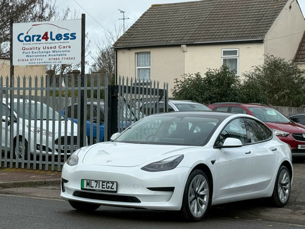 ONE OWNER FROM NEW, MOT TILL SEP 2026, FOR A FREE FINANCE CHECK VISIT OUR WEBSITE WWW.CARZ4LESS.CO.UKThis 2021 Tesla Model 3 Standard Range Plus is a superb example, having had only one owner since new. This electric vehicle boasts a 53 kWh battery offering a maximum range of 278 miles when new, making it ideal for both daily commutes and longer journeys. Charging is convenient, with a full charge at home taking approximately 7 hours and 10 minutes using a 7kW charger, while rapid public charging can take you from empty to 80% in just 29 minutes.The Model 3 comes equipped with a suite of helpful features designed for comfort and convenience. You'll find heated front seats for those colder mornings, LED headlights for enhanced visibility, and both front and rear parking sensors to assist with manoeuvring. Connectivity is seamless thanks to the Bluetooth connection. Furthermore, this particular model benefits from a large boot space, offering ample room for luggage or shopping, setting it apart from many other vehicles in its class.. 12-Way Power Adjustable Front and Rear Heated Seats, 12-Way Power Adjustable Heated Front Seats, 18in Alloy Wheels - Aero, 2 Zone Climate Control, 3x3 Point Rear Seat Belts, ABS - Anti-lock Braking System, Adaptive Cruise Control, Adaptive Steering, Additional USB-A Port - Glove Compartment, Air Conditioning, Airbags - Curtain, Airbags - Driver, Airbags - Passenger, Airbags - Side, Audio Remote Control, Audio System with 8 Speakers and Limited Immersive Sound, Auto Dimming - Power Folding - Heated Side Mirrors, Automated High-Beam Assist, Automatic Emergency Braking, Autopilot Function, Blind Spot Information, Bluetooth Connection, Body Coloured Bumpers, Centre Console with Storage - 4 USB Ports and Docking for 2 Smartphones, Collision Avoidance, Custom Driver Profiles, DVD, Daytime Running Lights - LED, Digital Radio, Electric Hinged Side Doors - Front, Electric Hinged Side Doors - Rear, Electrically Adjustable Drivers Seat, Electrically Adjustable Passenger Seat, Electrically Adjustable Steering Column - Tilt-Telescopic, Exterior Satin Black, Fixed Panoramic Glass Roof, Front Armrest, Front Cross Traffic Camera, Front Electric Windows, Front Fog Lights, Front Head Restraints, Front Parking Sensor, Graphite Finish Seat Controls, Heat Pump, Height Adjustable Drivers Seat, Inductive Charging Mats - Two Smartphones, Interior Carpeting, Interior Floor Mats, Internet Connection, Isofix Child Seat Anchor Points, Keyless Go, LED Headlights, Lane Departure Warning, Map and Reading Lights, Matt Finish Trim, Media Storage, Metalised Scroll Wheels - Steering Wheel, Mobile Phone App Interface, Navigation System, OEM Sound System, Park Assist Camera, Power Steering - Speed Sensitive, Powerlift Trunk, Premium Seat Material and Trim, Radio - AM-FM - Internet Streaming, Rear Cross Traffic Camera, Rear Electric Windows, Rear Headrests, Rear Light - LED, Rear Parking Sensor, Remote Central Locking, Reverse Parking Aid, Satin Black Sill Plates, Seats - Heated Front, Service Indicator, Software Updates over WIFI, Steer-By-Wire Technology, Steering Wheel Mounted Controls, Telephone, Tinted Glass Roof with Ultraviolet and Infrared Protection, Traction Control, Traffic Sign Recognition, Trip Computer, Two Additional USB-C Port, Type 2 Public Charging Connector, Tyre Pressure Monitoring System, USB-iPod Interface, Upgraded Audio - Immersive Sound.