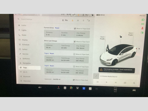 ONE OWNER FROM NEW, MOT TILL JUNE 2026, FOR A FREE FINANCE CHECK VISIT OUR WEBSITE WWW.CARZ4LESS.CO.UKThis 2021 Tesla Model 3 Standard Range Plus is a superb example, having had only one owner since new. As an electric vehicle, it boasts a 53 kWh battery offering a maximum range of 278 miles when new. Charging is convenient, with a full charge at home taking approximately 7 hours and 10 minutes using a 7kW charger, while rapid public charging can take you from empty to 80% in just 29 minutes. This Model 3 also comes equipped with helpful features such as Park Assist Camera and Front Parking Sensors for easier manoeuvring, heated front seats for comfort, and inductive charging mats for two smartphones, ensuring your devices stay powered up on the go. Bluetooth connectivity is also included for seamless audio streaming and handsfree calls.The generous boot space in this Tesla Model 3 provides ample room for luggage, shopping, or sports equipment, making it a practical choice for everyday use and longer journeys. The combination of its impressive electric range, efficient charging capabilities, and thoughtful interior features like the wireless phone charging and heated seats, sets this Model 3 apart, offering a refined and convenient driving experience.. 12-Way Power Adjustable Front and Rear Heated Seats, 12-Way Power Adjustable Heated Front Seats, 18in Alloy Wheels - Aero, 2 Zone Climate Control, 3x3 Point Rear Seat Belts, ABS - Anti-lock Braking System, Adaptive Cruise Control, Adaptive Steering, Additional USB-A Port - Glove Compartment, Air Conditioning, Airbags - Curtain, Airbags - Driver, Airbags - Passenger, Airbags - Side, Audio Remote Control, Audio System with 8 Speakers and Limited Immersive Sound, Auto Dimming - Power Folding - Heated Side Mirrors, Automated High-Beam Assist, Automatic Emergency Braking, Autopilot Function, Blind Spot Information, Bluetooth Connection, Body Coloured Bumpers, Centre Console with Storage - 4 USB Ports and Docking for 2 Smartphones, Collision Avoidance, Custom Driver Profiles, DVD, Daytime Running Lights - LED, Digital Radio, Electric Hinged Side Doors - Front, Electric Hinged Side Doors - Rear, Electrically Adjustable Drivers Seat, Electrically Adjustable Passenger Seat, Electrically Adjustable Steering Column - Tilt-Telescopic, Exterior Satin Black, Fixed Panoramic Glass Roof, Front Armrest, Front Cross Traffic Camera, Front Electric Windows, Front Fog Lights, Front Head Restraints, Front Parking Sensor, Graphite Finish Seat Controls, Heat Pump, Height Adjustable Drivers Seat, Inductive Charging Mats - Two Smartphones, Interior Carpeting, Interior Floor Mats, Internet Connection, Isofix Child Seat Anchor Points, Keyless Go, LED Headlights, Lane Departure Warning, Map and Reading Lights, Matt Finish Trim, Media Storage, Metalised Scroll Wheels - Steering Wheel, Mobile Phone App Interface, Navigation System, OEM Sound System, Park Assist Camera, Power Steering - Speed Sensitive, Powerlift Trunk, Premium Seat Material and Trim, Radio - AM-FM - Internet Streaming, Rear Cross Traffic Camera, Rear Electric Windows, Rear Headrests, Rear Light - LED, Rear Parking Sensor, Remote Central Locking, Reverse Parking Aid, Satin Black Sill Plates, Seats - Heated Front, Service Indicator, Software Updates over WIFI, Steer-By-Wire Technology, Steering Wheel Mounted Controls, Telephone, Tinted Glass Roof with Ultraviolet and Infrared Protection, Traction Control, Traffic Sign Recognition, Trip Computer, Two Additional USB-C Port, Type 2 Public Charging Connector, Tyre Pressure Monitoring System, USB-iPod Interface, Upgraded Audio - Immersive Sound.