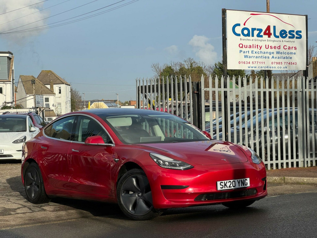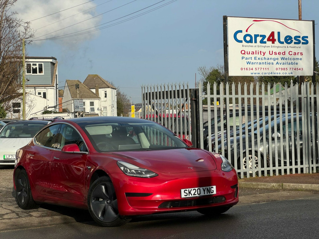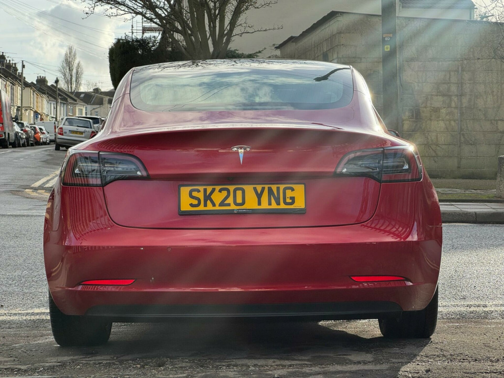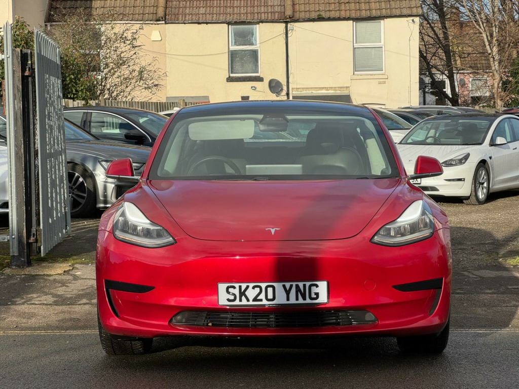 ONE OWNER FROM NEW! 2 KEYS! This 2020 Tesla Model 3 Standard Range Plus offers an exceptional electric driving experience. As an electric vehicle, it boasts a 53 kWh battery providing a maximum range of 254 miles when new. This model comes equipped with essential features for comfort and safety, including air conditioning, rear parking sensors, adaptive cruise control, Bluetooth connectivity, and blind spot information.The Model 3 Standard Range Plus is designed for convenience and efficiency. Charging at home with a 7kW charger takes approximately 7 hours and 10 minutes for a full charge, while rapid public charging can take you from empty to 80% in just 29 minutes. These charging times, combined with its impressive range and advanced driver assistance systems, position this Tesla as a superior choice for those seeking a modern and capable electric car.. 12-Way Power Adjustable Heated Front Seats, 18in Alloy Wheels - Aero, 2 Zone Climate Control, 3x3 Point Rear Seat Belts, ABS - Anti-lock Braking System, Adaptive Cruise Control, Adaptive Steering, Air Conditioning, Airbags - Curtain, Airbags - Driver, Airbags - Passenger, Airbags - Side, Audio Remote Control, Audio System with 8 Speakers and Limited Immersive Sound, Auto Dimming - Power Folding - Heated Side Mirrors, Automated High-Beam Assist, Automatic Emergency Braking, Autopilot Function, Blind Spot Information, Bluetooth Connection, Body Coloured Bumpers, Centre Console with Storage - 4 USB Ports and Docking for 2 Smartphones, Collision Avoidance, Custom Driver Profiles, DVD, Daytime Running Lights - LED, Digital Radio, Electric Hinged Side Doors - Front, Electric Hinged Side Doors - Rear, Electrically Adjustable Drivers Seat, Electrically Adjustable Passenger Seat, Electrically Adjustable Steering Column - Tilt-Telescopic, Fixed Panoramic Glass Roof, Front Armrest, Front Cross Traffic Camera, Front Electric Windows, Front Fog Lights, Front Head Restraints, Front Parking Sensor, Height Adjustable Drivers Seat, Interior Carpeting, Internet Connection, Isofix Child Seat Anchor Points, Keyless Go, LED Foglights, LED Headlights, Lane Departure Warning, Map and Reading Lights, Media Storage, Mobile Phone App Interface, Navigation System, OEM Sound System, Park Assist Camera, Power Steering - Speed Sensitive, Premium Seat Material and Trim, Radio - AM-FM - Internet Streaming, Rear Cross Traffic Camera, Rear Electric Windows, Rear Headrests, Rear Parking Sensor, Remote Central Locking, Reverse Parking Aid, Seats - Heated Front, Service Indicator, Software Updates over WIFI, Steer-By-Wire Technology, Steering Wheel Mounted Controls, Telephone, Tinted Glass Roof with Ultraviolet and Infrared Protection, Traction Control, Traffic Sign Recognition, Trip Computer, Type 2 Public Charging Connector, Tyre Pressure Monitoring System, USB-iPod Interface, Upgraded Audio - Immersive Sound.