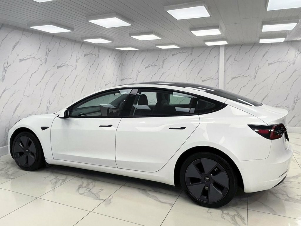 This 2021 Tesla Model 3 Standard Range Plus has been cherished by just one owner since new, offering a superb example of this popular electric vehicle. With its efficient 53 kWh battery, it provides a maximum range of 278 miles when new, making it ideal for both daily commutes and longer journeys. Charging is convenient, taking approximately 7 hours and 10 minutes at home using a 7kW charger, while rapid public charging can replenish the battery from empty to 80% in as little as 29 minutes. This vehicle is roadworthy with its MOT valid until August 2026, and it comes equipped with a host of desirable features including Bluetooth connectivity, 12 way power adjustable front and rear heated seats, dual zone climate control, keyless go, and front parking sensors. The generous boot space in this Model 3 ensures you have ample room for luggage, shopping, or equipment, a practical advantage for everyday use. The combination of its impressive electric range, rapid charging capabilities, and the comfort and convenience offered by its heated seats and climate control system, sets this Tesla Model 3 apart from many other vehicles in its class. Its single owner provenance and well maintained condition further enhance its appeal as a smart choice for anyone looking to embrace electric motoring. Premium Engineered Material - Black, Pearl White, 12-Way Power Adjustable Front and Rear H, 12-Way Power Adjustable Heated Front Sea, 18in Alloy Wheels - Aero, 2 Zone Climate Control, 3x3 Point Rear Seat Belts, ABS - Anti-lock Braking System, Adaptive Cruise Control, Adaptive Steering, Additional USB-A Port - Glove Compartmen, Air Conditioning, Airbags - Curtain, Airbags - Driver, Airbags - Passenger, Airbags - Side, Audio Remote Control, Audio System with 8 Speakers and Limited, Auto Dimming - Power Folding - Heated Si, Automated High-Beam Assist, Automatic Emergency Braking, Autopilot Function, Blind Spot Information, Bluetooth Connection, Body Coloured Bumpers, Centre Console with Storage
