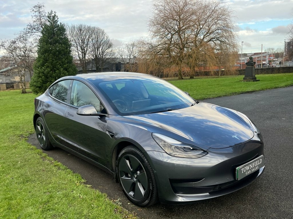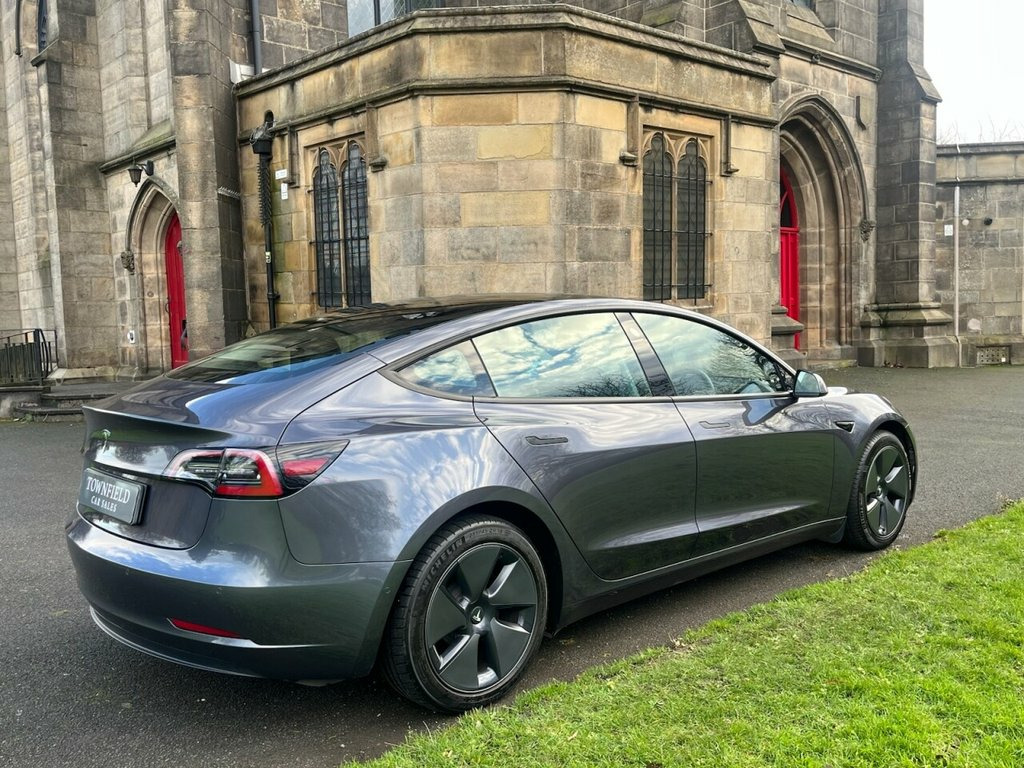 This 2021 Tesla Model 3 Standard Range Plus Is finished in Grey with Black leather Seats. Presenting a superb ownership opportunity, having been meticulously maintained by just one owner since new. As an electric vehicle, it boasts a 53 kWh battery offering an impressive maximum range of 278 miles when new. Charging is convenient, with a full charge at home taking approximately 7 hours and 10 minutes using a 7kW charger, while rapid public charging can replenish the battery from empty to 80% in as little as 29 minutes. This Model 3 also comes equipped with a suite of advanced features, including Park Assist Camera and Front Parking Sensors for effortless manoeuvring, a fixed panoramic glass roof to enhance the cabin's sense of space, and inductive charging mats for two smartphones. The interior comfort is further elevated by the 2 zone climate control, ensuring a pleasant environment for all occupants. Beyond its technological advancements, this Tesla Model 3 offers substantial practicality, highlighted by its large boot space, making it ideal for everyday use and longer journeys alike. These features collectively demonstrate how this particular Model 3 stands out, offering a refined and convenient electric driving experience. 12-Way Power Adjustable Front and Rear H, 12-Way Power Adjustable Heated Front Sea, 18in Alloy Wheels - Aero, 2 Zone Climate Control, 3x3 Point Rear Seat Belts, ABS - Anti-lock Braking System, Adaptive Cruise Control, Adaptive Steering, Additional USB-A Port - Glove Compartmen, Air Conditioning, Airbags - Curtain, Airbags - Driver, Airbags - Passenger, Airbags - Side, Audio Remote Control, Audio System with 8 Speakers and Limited, Auto Dimming - Power Folding - Heated Si, Automated High-Beam Assist, Automatic Emergency Braking, Autopilot Function, Blind Spot Information, Bluetooth Connection, Body Coloured Bumpers, Centre Console with Storage - 4 USB Port, Collision Avoidance, Custom Driver