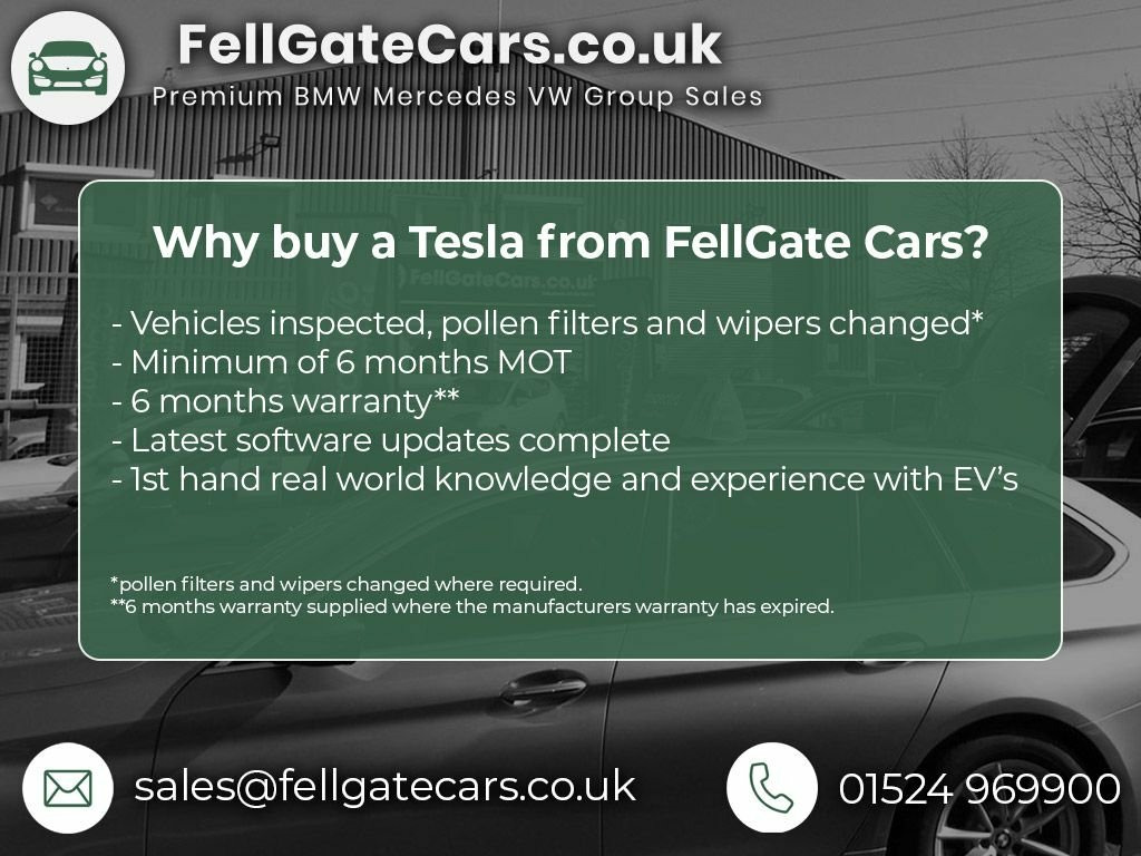 1 Owner from New / Stunning Metallic Red / WARRANTY!!! - Peace of Mind Motoring with the Balance of Tesla Battery and Drive Unit Warranty to November 2029 or 100,000 Miles / Battery Report Available Upon Request / Newer Model with Heat Pump / Fixed Panoramic Sunroof / Electrically Adjustable Heated Front Seats / Heated Steering Wheel / Front and Rear Parking Aids with Rear Parking Camera / Central Touch Screen with Satellite Navigation and DAB Radio / Theatre Mode with Netflix, YouTube (subscription required) / Bluetooth Connectivity / Blind Sport Cameras / Traffic Aware Cruise Control with Autosteer (Beta) / Sentry Mode and Dash Camera / Wireless Charging Pad for Phone / Arcade with Fun Interactive Games / Power Assisted Tailgate / VAT QUALIFYING / FAMILY BUSINESS EST. 1945 & 5 STAR RATED / ALL TESLA'S SUPPLIED WITH NEW POLLEN FILTERS AND MULTI-POINT INSPECTED / MINIMUM OF 6 MONTHS MOT & WARRANTY / WE OFFER A HELPFUL, PROFESSIONAL CUSTOMER ORIENTATED SERVICE WITH OVER 75 YEARS OF EXPERIENCE IN THE MOTOR INDUSTRY / UK MAINLAND DELIVERY AVAILABLE (Driven delivery service @ £1.50pm) / 12-Way Power Adjustable Front and Rear H, 12-Way Power Adjustable Heated Front Sea, 18in Alloy Wheels - Aero, 2 Zone Climate Control, 3x3 Point Rear Seat Belts, ABS - Anti-lock Braking System, Adaptive Cruise Control, Adaptive Steering, Additional USB-A Port - Glove Compartmen, Air Conditioning, Airbags - Curtain, Airbags - Driver, Airbags - Passenger, Airbags - Side, Audio Remote Control, Audio System with 8 Speakers and Limited, Auto Dimming - Power Folding - Heated Si, Automated High-Beam Assist, Automatic Emergency Braking, Autopilot Function, Blind Spot Information, Bluetooth Connection, Body Coloured Bumpers, Centre Console with Storage - 4 USB Port, Collision Avoidance, Custom Driver