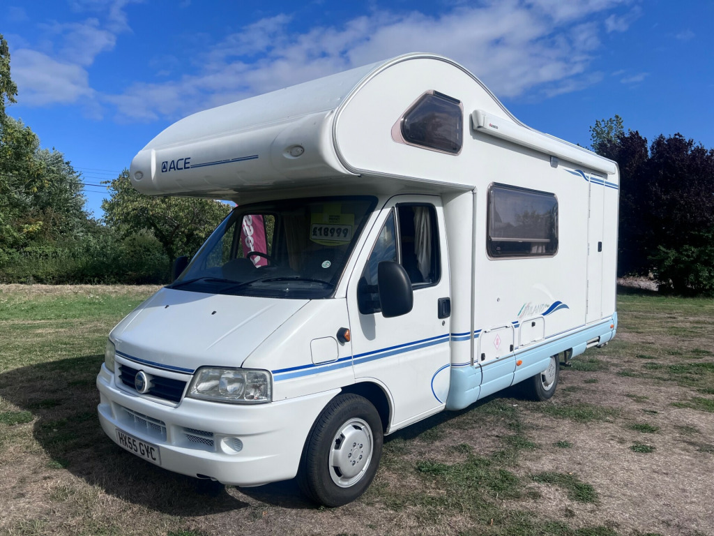 For sale is a 2005 Ace Milano Motorhome with only 30000 miles on the clock. This 5 berth Diesel vehicle has a Gross weight of 3400kg and comes with 2 rear belts, making it an ideal choice for family or group trips. The MOT is valid until May 2026, showcasing its excellent condition and roadworthiness. With 3 previous registered keepers, this Motorhome is in superb condition and ready for its next adventure. Don't miss out on the opportunity to own this well-maintained and reliable vehicle for all your travel needs.Supplied with a New habitation check and a comprehensive warranty. Part exchange welcome. No finance. Located at Bs246se. Open everyday ,