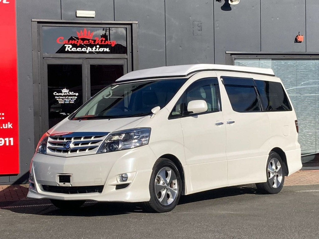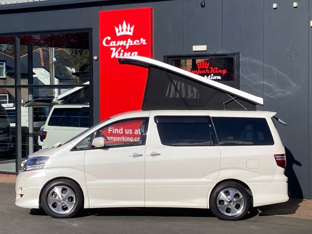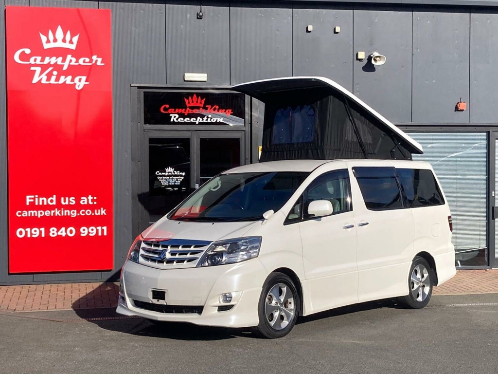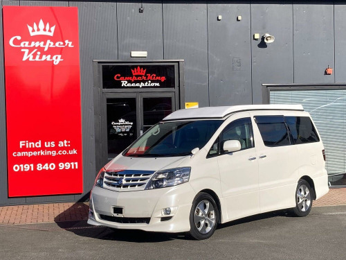 Absolutely stunning Camperking Toyota Alphard Campervan. We were the very first in the UK to offer for Sale the Toyota Alphard Campervan and Alphard Hybrid Campervan so come to the Experts. All of our Alphards are prepared to the Absolute Highest of Standards and fully registered for the UK roads with MOT, Full Service and Multi Point Health Check prior to going in to build. We have been importing Vehicles from Japan for over 25 years and all of our Vehicles are inspected in Japan prior to us purchasing them so we handpick only the Very Best Examples. We do absolutely all of the leg work for you to make sure your purchase is completely hassle free. Fresh off the production line with only 52000 miles on the clock complete with our Brand New Camperking Luxury Conversion this Stunning 2006 Model Finished in the stunning Pearl White Paintwork is ready for Adventure! The New Conversion includes Premium Kitchen Furniture Hand Crafted, Worktop with Under Counter Sink & Built in Drainer, Webasto Petrol Heater, Pioneer Head Unit which Includes DAB & Bluetooth, Luxury Upholstery Throughout, Altro Flooring, LED Halo Lighting Throughout, Large Centre Console, M1 Tested Rock n Roll Bed, Elevating Roof Bed System, One Piece Pop Top, 50l Fridge, Double Burner Hob, Microwave, Double Rail Curtains, Passenger Swivel Seat, Mains Hook Up Point, On Board Water Tank, 12 Month Vehicle Warranty. Indoor Showroom in North Shields. Open MON-SUN. Nationwide Delivery Available. Contact our Friendly Team on 01912722633 for more info