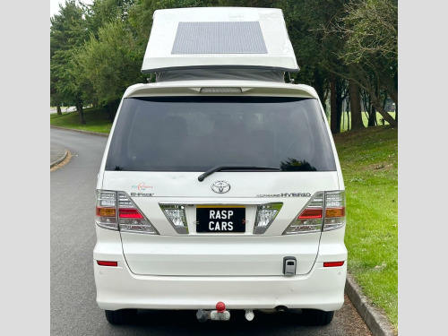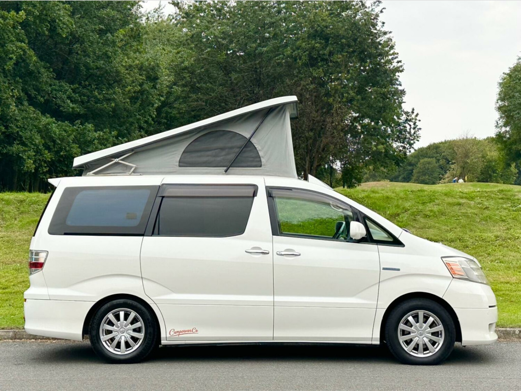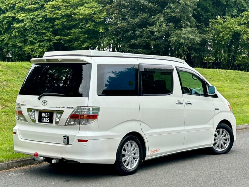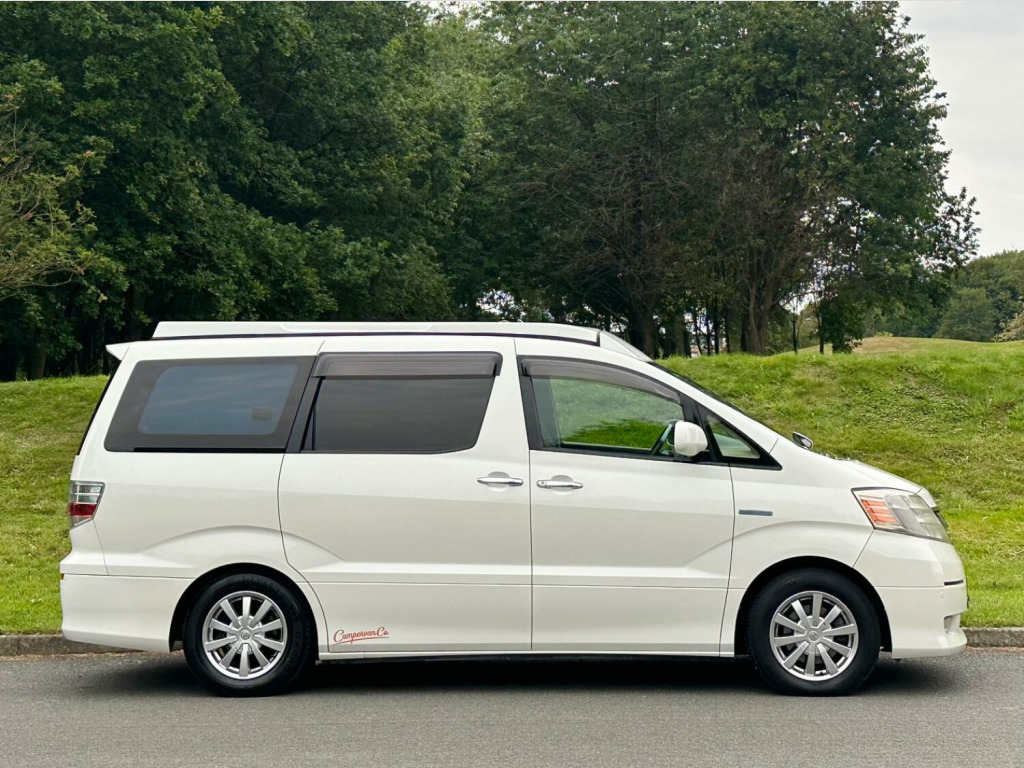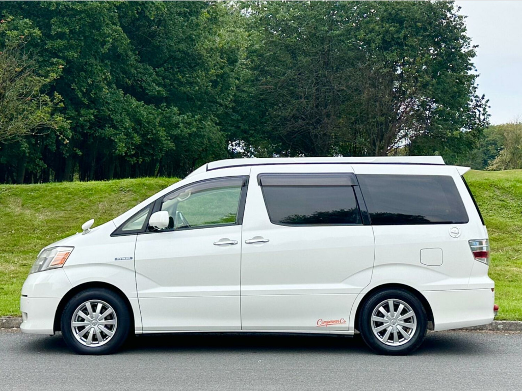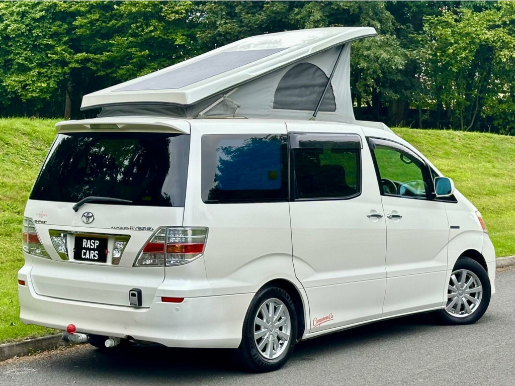 We are Extremely Pleased to be able to offer this Superb 2007 Toyota Alphard 2.4 Petrol / Hybrid - Automatic 4WD Four Wheel Drive - High Specification 4 Berth Camper. Finished in Metallic Pearl White. This Vehicle is ULEZ Compliant. , Covered 86,000 Miles, Just had a Fresh Engine Service, Current MOT Expires October 2025 - However will be sold with 12 Months MOT. Only 1 Former Keeper. , Usual Spec; Full Electric Pack, PAS, ABS, Remote Central Locking, Plush Velour Interior, Rear Seats. Front Seats always had covers on since import so the condition is excellent. , * * * 4 BERTH CAMPER CONVERSION CARRIED OUT BY CAMPERVAN CO * * * HUGE Spec includes, Rock n Roll Bed - Folding Seats, Swivelling Front Passenger Seat, TWIN ELECTRIC SLIDING DOORS, Multiple Storage Compartments, Rear Privacy Glass, Silky Smooth Automatic Gearbox, CRUISE CONTROL, Wind Deflectors, Sink, Electric Hob Cooker, Wooden Worktop, Fridge, also has a Lithium Battery / Solar / Inverter to be able to charge E-bikes Batteries / Laptops / Camera batteries on the go and it has worked brilliantly, Android Stereo, Bluetooth, USB Port, POP TOP ROOF, Leisure Battery, Fire Extinguisher, Curtains All Round, Towbar Fitted also. Plus Much More.... , This is Excellent Value for a Fully Converted High Spec Toyota Alphard Petrol / Hybrid Camper Van - Last Keeper Purchased in 2022 and was the First Private UK Owner. , Being a Petrol Hybrid version it benefits from having full time Four Wheel Drive, so ideal if your going camping off road or driving in bad weather conditions. , Starts and Drives Superb. High Quality Import. , Viewing By Appointment - Part Exchange Welcome