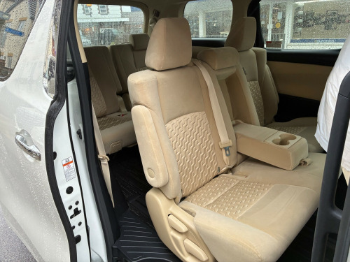 This 2015 Toyota Alphard 3rd generation MPV is a reliable and spacious vehicle with only 57500 miles on the clock. Powered by a 2.5 PETROL engine, this automatic car is both practical and efficient. With 8 seats and 5 doors, it's perfect for large families or group outings. Not only is it ULEZ compliant, but it also comes with a 12-month warranty for added peace of mind. Safety features like ABS and airbags ensure a secure driving experience, while the alloy wheels add a touch of style. Whether you're commuting or going on a road trip, this next generation new shape Alphard is ready to deliver comfort and reliability with its air conditioning and low mileage. Ref 9 month warranty, 8 seater, abs, air bags, air conditioning, alloy wheels, apple carplay, bimta jervic mileage certified, captain seats, carplay stereo with satnav & reversing camera, current mot, dual power slide doors, electric mirrors, electric windows, full service history, fully serviced, head rests, immobilisor, parking sensors, pas, push start, rear seatbelts, rear spoiler, remote central locking, reversing camera, spare key, tinted glass, ulez compliant, led interior lights