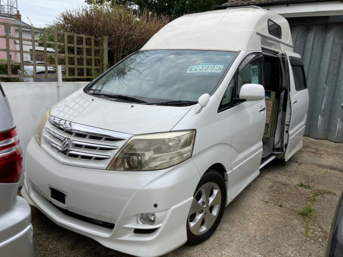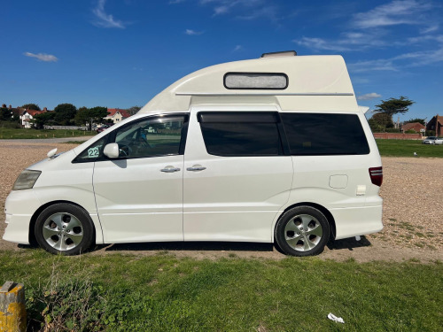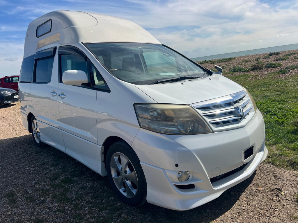 For sale is a 2008 Toyota Alphard campervan with just 61670 miles on the clock. This 2 berth camper is powered by a petrol engine and comes equipped with a hi top roof, cassette toilet, and a pull out bed on runners. The kitchen area features a gas hob sink combo and a 1 burner hob and sink combo. The vehicle also includes a 240v system, as well as a cool box powered by a 12v socket. Safety features include air bags, Apple Carplay Stereo with UK Satnav and it comes with a current MOT and a BIMTA Mileage certificate, making it a reliable choice for your travels. Don't miss out on this well-maintained, comfortable camper that's perfect for your road trips and camping adventures. WAS £23,495 WINTER SPECIAL PROMOTION NOW ONLY £22,495 ! Making way for new campers in production for 2026 burner hob and sink combo, 12 month warranty, 12v power, 2 tables, 240v mains hook up, 75 amp leisure battery, aa bimta mileage certificate, abs, air bags, air conditioning, alloy wheels, cold water tap, cool box 12v, current mot, curtains, drive away awning multi rail, electric windows, fire extinguisher, fresh & waste water containers, front passenger swivel seat, fully serviced, gas locker, gas safety habitation test certificate, hi top roof, l shape sofa pull out bed on runners, led lights, leisure battery, pas, pms unit, pull out bed 178cn length x 120cm wide, rear parking camera, remote central locking, reversing sensors, skylight, sliding table rail and table, spare key, storage, thetford cassette style toilet, tinted glass, top locker, twin usb sockets, ulez compliant