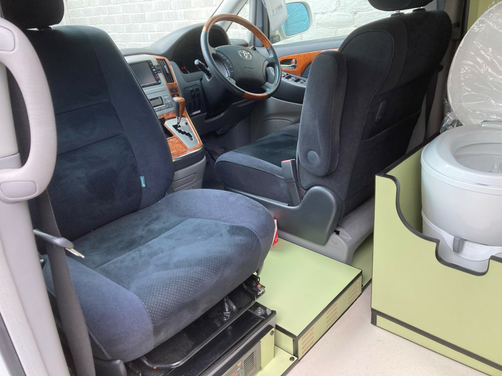 This 2008 Toyota Alphard 2 berth Hi top roof camper conversion with cassette toilet, pull out bed on is currently available for £22,495 in Havant Hampshire with Petrol engine and Automatic gearbox. For more information or to arrange a viewing, click here to send us an email using form below.