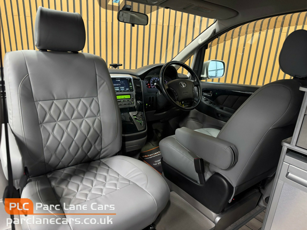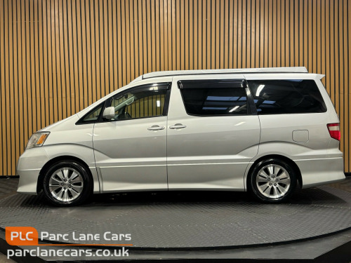 PARC LANE CARS OF GOSFORTH PRESENT THIS BEAUTIFUL LOW MILEAGE TOYOTA ALPHARD 3.0 AUTOMATIC CAMPER. FINISHED IN SILVER PEARL METALLIC WITH BESPOKE GREY DIAMOND LEATHER INTERIOR TRIM!THIS IS A BRAND NEW CONVERSION ON A RECENTLY IMPORTED VEHICLE, FROM JAPAN IN 2022!Drivelodge PoptopFabworx's bedFull upholstery throughout with passenger swivelInsulated and sound deadened throughoutBlackout curtainsLvt flooringLightweight furniture with corian work surfaceIntegrated domestic sink and twin burner hobGas box for camping gas 907 bottle50 litre fridge85ah leisure battery with heavy duty split chargerSargent ec155 power management system.12v and 230v socketsReading lightsLED mood lights16 litre on board water with external gravity fed fill point.FITTED TO THE HIGHEST STANDARD AND MADE WITH THE BEST AVAILABLE MATERIALS - PROFESSIONALLY DONE!THIS CAMPER IS SIMPLY STUNNING AND IS NOT TO BE MISSED!!FINANCE IS AVAILABLE AND PART EXCHANGE IS WELCOMEREG NO. NA52SYF** LISTED SPECIFICATION IS SHOWN AS ACCURATELY AS POSSIBLE. ERRORS MAY OCCUR. PLEASE ASK US TO CLARIFY IF YOU HAVE ANY QUERIES. **