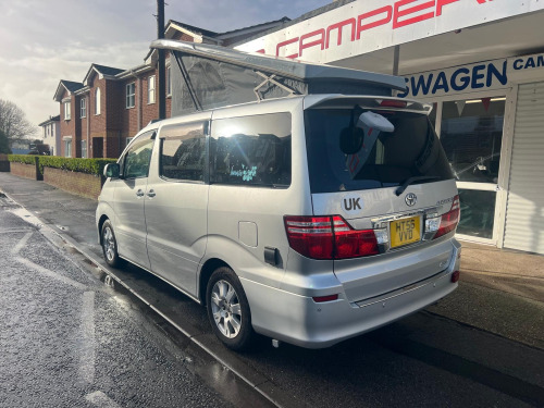This 2006 Toyota Alphard AX L EDITION 2-4 berth camper with cassette toilet Air Con Low miles P/X TO is currently available for £21,995 in Havant Hampshire with Petrol engine and Automatic gearbox. For more information or to arrange a viewing, click here to send us an email using form below.