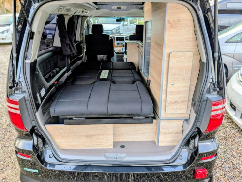 Are you looking for the perfect blend of luxury and practicality for your next adventure? Replace your car today with an everyday campervan and hit the road in this Toyota Alphard. It is fully equipped to keep you comfortable on short and long trips away. With its sleek design, renowned Toyota reliability and side campervan conversion, the Alphard is well known for its smooth ride, reliability and comfort. Its perfect for day to day driving, long trips or quick weekend getaways. With this camper conversion, you get a luxurious travel experience without compromising on practicality. It's the ideal goldilocks sized campervan – small enough to park and drive easy, but large enough to provide ample living space. Awnings, cycle carrier towbars or other accessories can also be added, please contact us for details. Rear Tailgate Door, Twin Sliding Doors, Tinted windows, Alloy Wheels, Air Conditioning, Silver Screens, Pop Up Table, Curtains, Freshwater System, Gas Box, 240v Mains Electric Hook Up, 12v Leisure Battery System, LED Lighting, Finished Wood Surfaces, Toilet Facilities: Port Potti Storage Cu, Built in Cupboards and clever storage so, Kitchen area with fridge, a sink and 2 b, Seats 4, Sleeps 4, High Top Roof