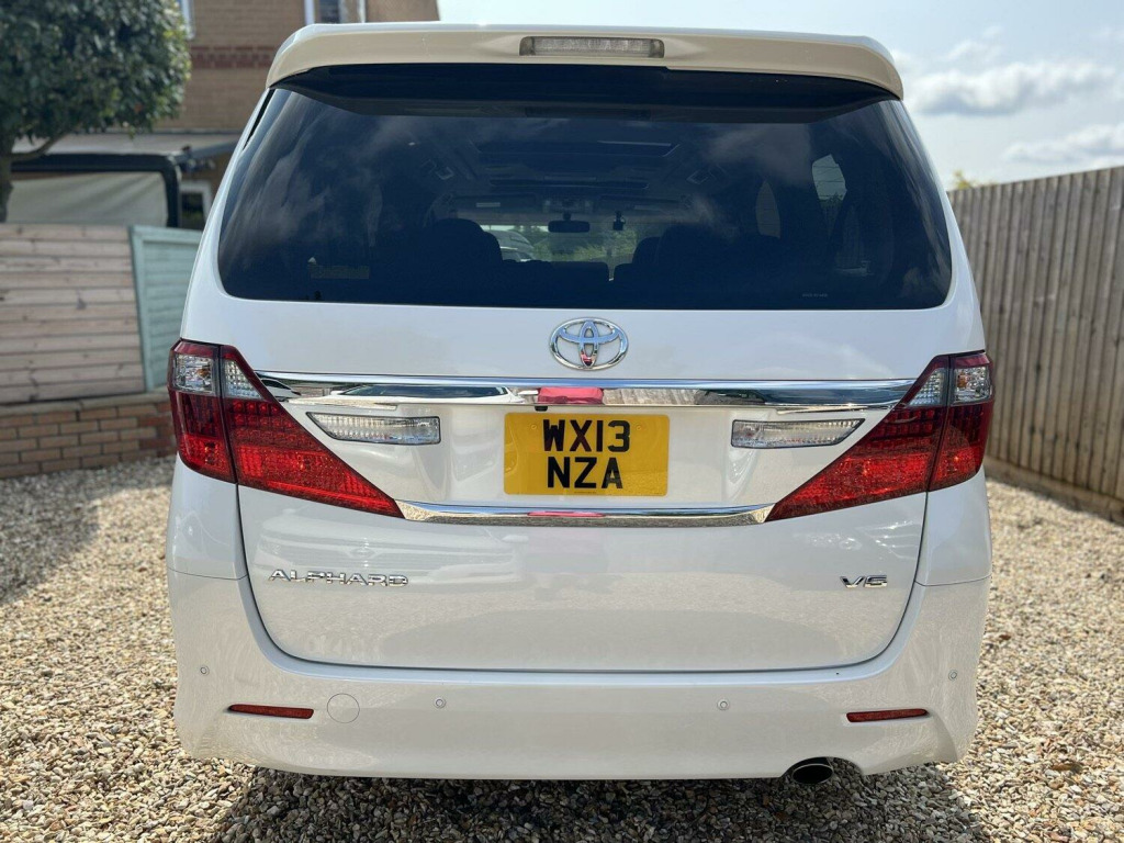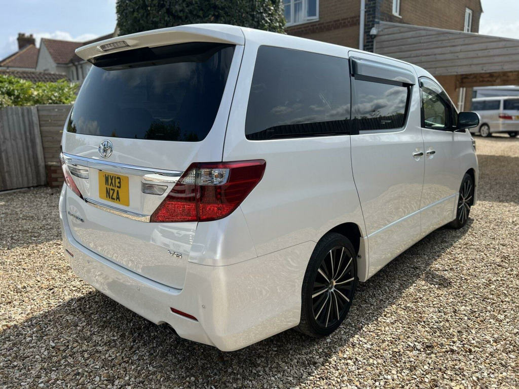 We are BIMTA Members - All mileages are certified and genuine. You are covered by BIMTA Mileage Buy Back Guarantee. , 2013 Toyota Alphard 350S. This rare model is the 3.5 V6 auto and have covered just 28,000 miles from new. Its unusual to come across an eight seater Alphard with twin sun roofs - especially at this mileage! Seating as 2 captains chairs and 2 further 3 seater rows which can move and fold to accommodate various layouts - including a large bed. Finished in pearl white metallic with matching luxury grey upholstery with wood trim. A truly stunning low mileage car. , Very high specification includes; Twin sun roofs, Auto lights, multi functional Leather and wood steering wheel, Power slide rear doors, power rear door, electric windows, electric mirrors, cruise control, reversing camera etc. Stunning after market alloy wheels. and much more. This car comes with a high end Japanese audio unit which features cameras around the car and bluetooth connectivity. , Presentation. All our cars are grade 4 and above which means they are already in beautiful condition. As part of our planned prep work, the paintwork has been treated to a professional two stage machine polish and any marks or scratches have been corrected. The interior has been professionally valeted and detailed and presented in as new a condition as you could expect. , Services, We always get our cars mechanically checked and where necessary, serviced. We also check that all recalls have been carried out with the manufacturers in Japan. All our cars have the mileage independently checked and verified by BIMTA. , Known Services, KM --- MLS, 2,037 --- 1,266, 3,568 --- 2,217, 5,916 --- 3,676, 11,288 --- 7,014, 16,372 --- 10,173, 28,062 --- 17,437, 29,815 --- 18,526, 43,368 --- 26,948, , Documents, Full book pack with instruction manuals, 2 Keys, Full seat of original carpet mats, UK V5, Remote control for audio. , What you can expect from us. Conversion from KM to Miles, Full UK registration and V5. Service and mechanical preparation where necessary. All MOT advisories corrected. Full Valeting and detailing. 3 months warranty (extension options), , Timeline. Now fully prepared and ready to go. , To reserve this car please email, text or call us.