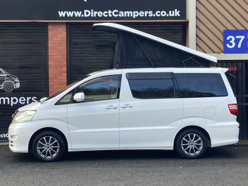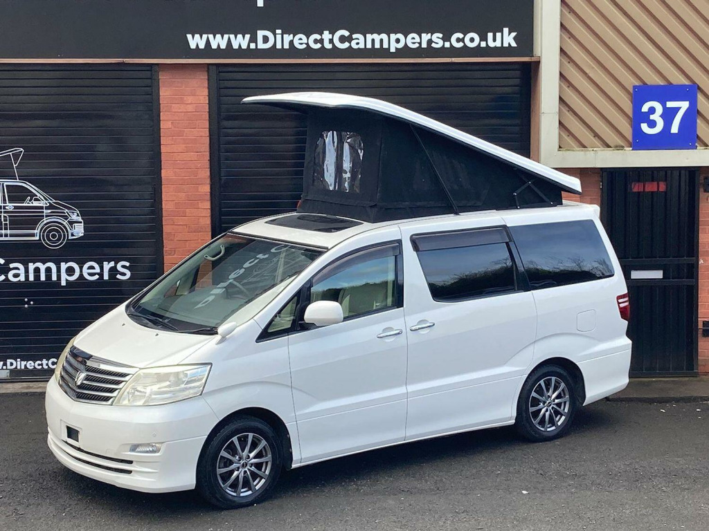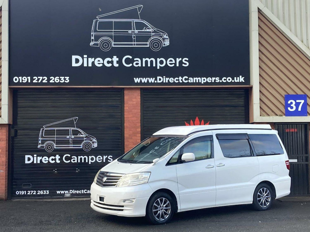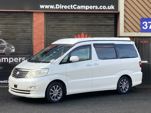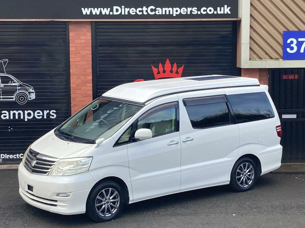 , , All New Anniversary Conversion, Introducing our New Premium Anniversary Edition Toyota Alphard Campervan. Designed In House and Built In House offering you unparalleled Quality! Direct Campers, The home of the Toyota Alphard Campervan. We were the very first in the UK to offer for Sale the Toyota Alphard Campervan and Alphard Hybrid Campervan so come to the Experts. All of our Alphards are prepared to the Absolute Highest of Standards and fully registered for the UK roads with MOT, Full Service and Multi Point Health Check prior to going in to build. We have been importing Vehicles from Japan for over 25 years and all of our Vehicles are inspected in Japan prior to us purchasing them so we handpick only the Very Best Examples. We do absolutely all of the leg work for you to make sure your purchase is completely hassle free. Fresh off the production line with only 56000 miles on the clock complete with our Brand New Luxury Anniversary Edition Conversion this Stunning 2006 Model Finished in the stunning Pearl White Paintwork is ready for Adventure! The New Conversion includes Premium Kitchen Furniture Hand Crafted using Traditional Joinery Methods, Stunning Bamboo Worktop with Under Counter Sink & Built in Drainer, Propex Gas Heater, NDS Solar Panel, Pioneer Head Unit which Includes Apple/Android Car Play, Luxury Upholstery Throughout, Altro Flooring, Halo Lighting Throughout, Large Centre Console, M1 Tested Rock n Roll Bed, Elevating Roof Bed System, One Piece Pop Top with Scenic Tent, Dometic CRX50 Fridge, Hafele Hardware used throughout, Rear Speaker System, Dometic Double Burner Hob, Microwave, High Quality Votronic Triple Charge System, Votronic Jupiter Controller, 35l Underslung Water Tank, Shower System, Van-X Curtains, Passenger Swivel Seat, Under Bonnet Mains Hook Up Point, Large Duracell AGM Battery, Unique Water Fill System, Hard Wired CBE Carbon Monoxide Alarm and LPG Gas Alarm and much more! Lifetime Rolling Warranty Available. Indoor Showroom in the Heart of Newcastle. Open MON-SAT. Nationwide Delivery Available. Contact our Friendly Team on 01912722633 for more info