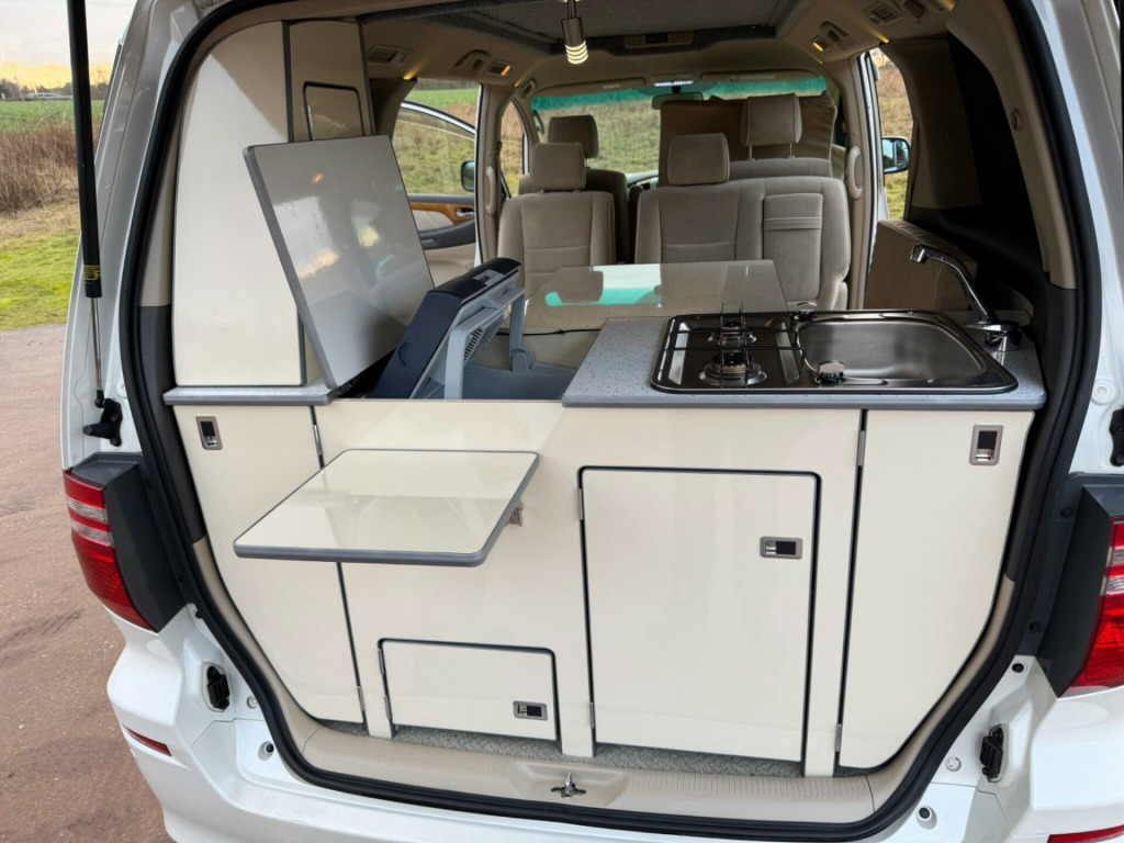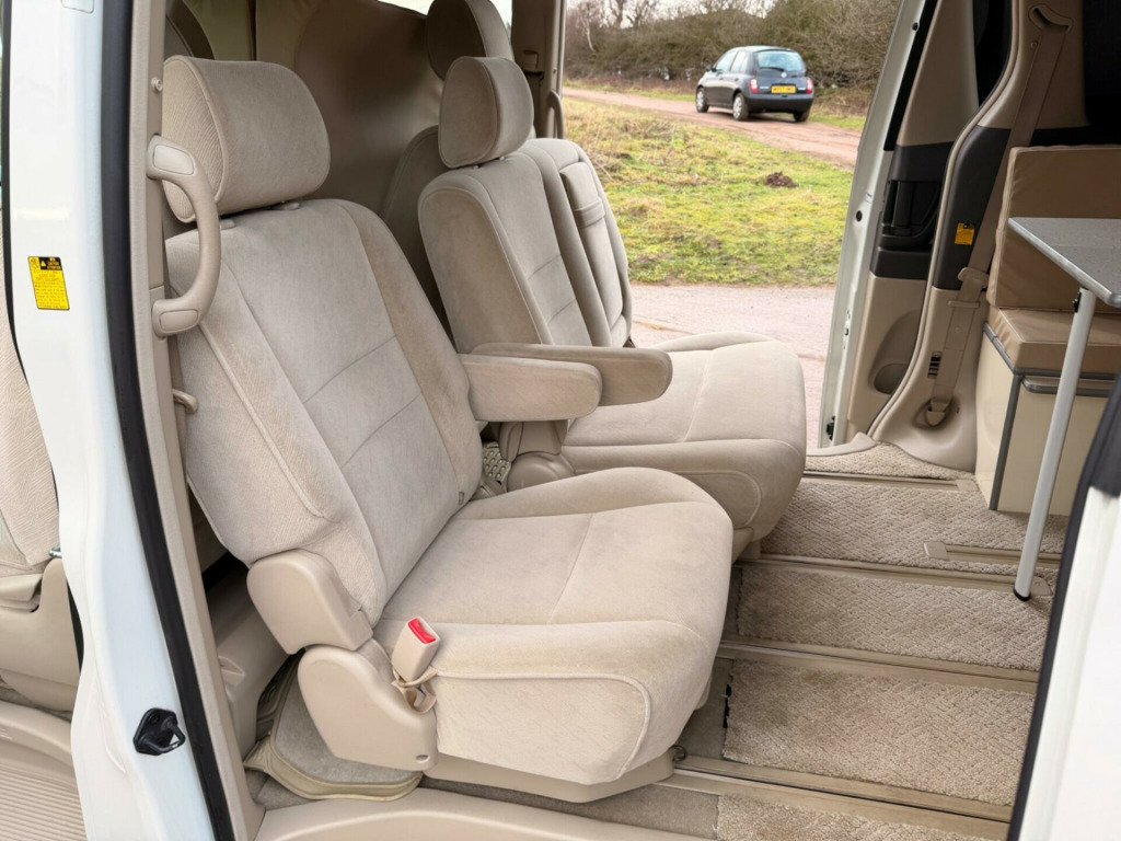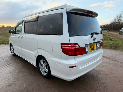 We are proud to offer this exceptional price range Toyota Alphard 2.4 Automatic Pop Roof Camper, 5 Seater, 4 Berth, only 91000 Miles with Japanese and English History, Imported in 2021, 2005 55 Reg, Not Imported by ourselves so I have provided a Clear Car VX Check (Jap HPi) showing its very good grade of 3.5, along with data and history, Camper Conversion carried out in the UK, All Jap and Uk Books Available with Both Keys, front and Rear Cameras, Drives very well, as I collected car and drove it 5 1/2 Hrs, Cruise Control, Air Con, DVD Player, Sink, Gas Hob with Bottle, Fridge, 240V Hook up with Lead, Leisure Battery, Plenty Of Storage, Multi Function Steering Wheel, 100W Inverter, Led Lighting, Privacy Glass with wind deflectors, Please see 100 Photos plus a detailed walk around video on my website www.sportsandprestigeoflichfield.co.uk Other Cars and campers available, PX No Problem.. 3x3 point rear seat belts, Air conditioning, Airbags, Alarm, CD Player, Central locking, Child locks & Isofix system, Cruise control, Alloy wheels, Electric door mirrors, Electric windows, Folding rear seats, Parking aid, Power steering, Remote central locking, Satellite navigation, Traction control. Part service history