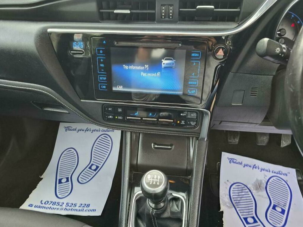 This 2015 Toyota Auris VVT-i Business Edition presents a superb ownership proposition, having been cherished by just one owner since new. This well appointed hatchback features a responsive 1.2 litre petrol engine, meeting the Euro 6 emission standards for cleaner driving. Inside, you'll find comfort and convenience with heated front seats and automatic air conditioning. For easier parking, a rear view reversing camera is included, and the Bluetooth Hands Free System, along with Bluetooth music streaming, keeps you connected on the go.This particular Auris VVT-i Business Edition offers impressive efficiency, achieving an outstanding 59 miles per gallon, which is better than many similar vehicles. Its low CO2 emissions also contribute to its economical running costs. You'll appreciate the generous boot space, perfect for shopping trips or luggage. Furthermore, its acceleration from 0 to 60 miles per hour in just 9.8 seconds demonstrates a capable performance that stands out from the crowd. in alloy wheels, 4.2in coloured tft multi-information display, abs - anti lock braking system, am-fm radio, airbags - curtain front and rear srs, airbags - driver knee srs, airbags - driver srs, airbags - front passenger cut-off switch, airbags - front passenger srs, airbags - front side srs, automatic air conditioning, aux input, bas - brake assist system, back lower floating bar - chrome plated, bluetooth hands free system, bluetooth music streaming, cruise control, dab digital radio, daytime running lights - led, ebd - electronic brakeforce distribution, electric power steering - eps, electric windows - front and rear, electric and heated door mirrors, front fog light - bezel - piano black, front fog light - bezel moulding - piano black, front fog lights, hac - hill start assist control, headlights - halogen, isofix child restraint system, instrument panel - black soft touch, led rear combinations lights with led lightguide, leather gear shift knob, lightguide - led, lower grille - piano black, lower grille bar - chrome plated, pollen filter, radio and cd player, rear reflex reflector bezel - piano black, rear view reversing camera, remote central locking, seat belt reminder - front and rear, seats - anti-whiplash design, seats - heated front, seats - lumbar support, shark fin antenna, space saver spare wheel, speakers x6, steering wheel - leather, touch screen - 7in high resolution, toyota touch 2 with go navigation, traction control - trc, trip computer, two ring combimeters - satin chrome-plated, tyre pressure warning system, usb connection, upper grille - chrome plated, vsc - vehicle stability control