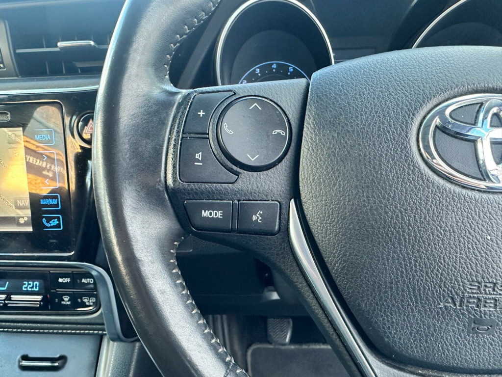 With only 48,800 miles on the clock, this 2015 Toyota Auris VVT-i Icon presents a superb example of a well-maintained vehicle. This Euro 6 compliant model boasts a responsive 1.2 litre petrol engine and comes equipped with the desirable Icon trim. Inside, you'll find automatic air conditioning with climate control, ensuring a comfortable cabin temperature whatever the weather. Stay connected and entertained with the Bluetooth hands-free system, which also allows for seamless music streaming. Parking is made easier thanks to the rear-view reversing camera, offering valuable assistance when manoeuvring.This Toyota Auris is designed to impress with its efficiency and practicality. Its fuel economy is a standout feature, achieving an excellent 59 miles per gallon, which is better than many similar vehicles. You'll also appreciate the generous boot space, perfect for shopping trips or luggage. Furthermore, its low CO2 emissions are a positive indicator of its environmental performance, again outperforming many comparable cars. For those who enjoy a bit of zip, it accelerates from 0 to 60 miles per hour in just 9.8 seconds, demonstrating a good balance of performance and economy. in alloy wheels, 4.2in coloured tft multi-information display, abs - anti lock braking system, am-fm radio, airbags - curtain front and rear srs, airbags - driver knee srs, airbags - driver srs, airbags - front passenger cut-off switch, airbags - front passenger srs, airbags - front side srs, automatic air conditioning, aux input, bas - brake assist system, back lower floating bar - chrome plated, bluetooth hands free system, bluetooth music streaming, dab digital radio, daytime running lights - led, ebd - electronic brakeforce distribution, electric power steering - eps, electric windows - front and rear, electric and heated door mirrors, front fog light - bezel - piano black, front fog light - bezel moulding - piano black, front fog lights, hac - hill start assist control, headlights - halogen, isofix child restraint system, instrument panel - black soft touch, led rear combinations lights with led lightguide, leather gear shift knob, lightguide - led, lower grille - piano black, lower grille bar - chrome plated, pollen filter, radio and cd player, rear reflex reflector bezel - piano black, rear view reversing camera, remote central locking, seat belt reminder - front and rear, seats - anti-whiplash design, shark fin antenna, space saver spare wheel, speakers x6, steering wheel - leather, touch screen - 7in high resolution, traction control - trc, trip computer, two ring combimeters - satin chrome-plated, tyre pressure warning system, usb connection, upper grille - chrome plated, vsc - vehicle stability control