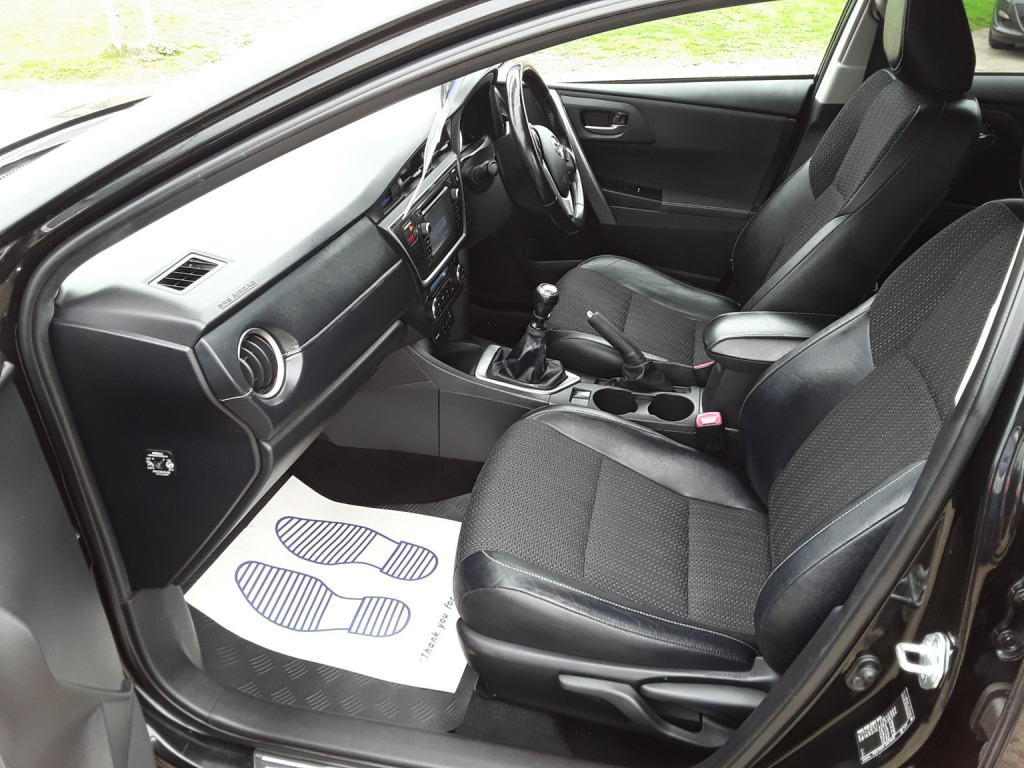 SAPPHIRE BLACK METALLIC WITH BLACK HALF LEATHER SEATS. NEWER SHAPE TOYOTA AURIS EXCEL D4-D 5 DOOR.VERY,VERY LOW MILEAGE OF 62,000 MILES BY 2 PREVIOUS OWNERS. STUNNING CONDITION INSIDE AND OUT. DRIVES AS NEW AS TOYOTA DO.LOTS OF SPEC:- HALF LEATHER SEATS, HEATED SEATS, REVERSING COLOUR CAMERA, ELECTRIC FOLDING MIRRORS, BLUETOOTH. ONLY £20 TO TAX FOR THE YEAR,AVERAGE 68 M.P.G.COMES WITH 12 MONTHS M.O.T.AND A FRESH SERVICE. 2 REMOTE KEYS. ULTRA RELIABLE AND VERY CHEAP TO RUN.1ST TO SEE WILL BUY.