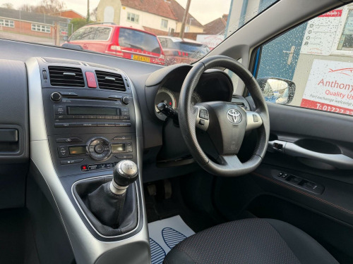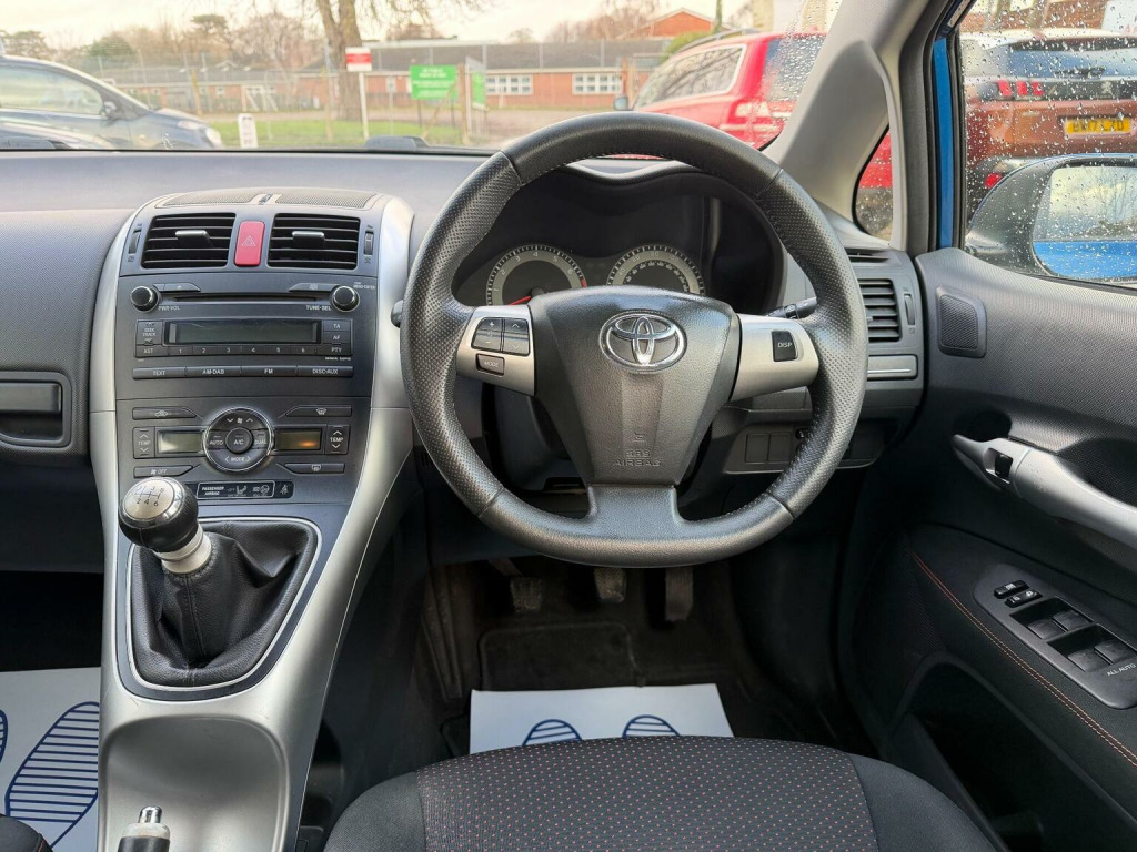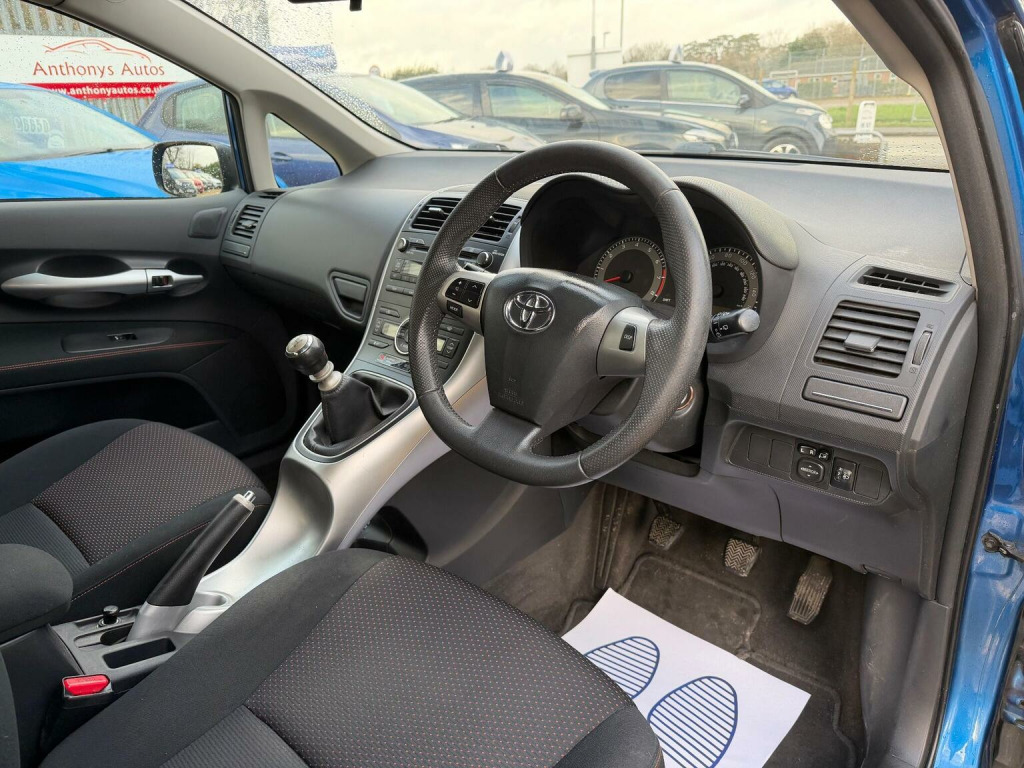 Toyota Auris 1.6 V-Matic SR Euro 5 5dr in Blue with a Contrasting Grey Cloth interior! 79k miles with an Documented Service Record and comes with fresh interim SERVICE & MOT till October 2026. Ideal first car! 1 former owner. Comes wth a clean cloth interior, Bluetooth phone connectivity, Air Con, CD player, USB, Aux input, 2 keys and more. 3 month warranty included. Free 12 months AA Roadside Breakdown and Recovery. Extended AA Warranties Available for 1,2 & 3 years. All Major Cards Accepted. Book an appointment to view this lovely little car today!