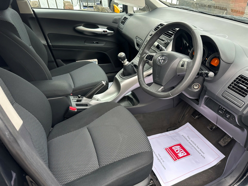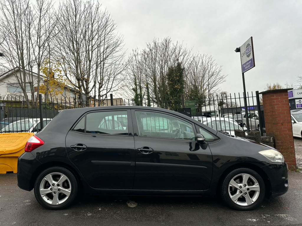 2011 11 TOYOTA AURIS TR 1598CC PETROL 5 DOOR HATCHBACK FINISHED IN METALLIC BLACK, THIS VEHICLE HAS COVERED JUST 86,000 MILES AND COMES WITH JUST 2 PREVIOUS OWNERS FROM NEW, TOYOTA SERVICE HISTORY, OFFERED WITH NEW MOT, ALLOY WHEELS, CLOTH INTERIOR, CLIMATE CONTROL, POWER STEERING, HEATED REAR SCREEN, METALLIC PAINT, HEAD RESTS AND WILL BE OFFERED WITH 3 MONTHS ENGINE AND GEARBOX WARRANTY, PLEASE CALL FOR FULL DEATILS.