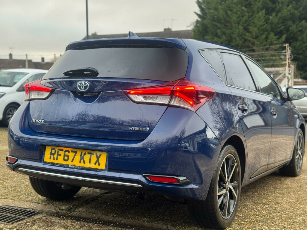 |||| THE USED CAR: ||||We are pleased to offer this Toyota Auris 1.8 VVT-h Design CVT Euro 6 (s/s) 5dr, finished in a brilliant and unique dark blue paint with contrasting black/chrome accents. With just 1 former keeper, this well-cared-for petrol hybrid automatic offers an excellent balance of efficiency, comfort, and reliability. The 1.8 hybrid powertrain produces 134bhp, delivering smooth, quiet performance that’s ideal for both town driving and longer journeys.The Design trim is well equipped, featuring automatic air conditioning, a 7-inch high-resolution touchscreen, Bluetooth hands-free and music streaming, DAB radio, cruise control, and a rear view reversing camera to make parking easy. You also benefit from 17-inch alloy wheels, privacy glass, push-button start, and a comfortable, well-finished cabin that makes this Auris a very pleasant place to be.Running costs are where this Auris really shines. Thanks to its hybrid technology, it offers excellent fuel efficiency, sits in a low insurance group, and benefits from low CO2 emissions, helping to keep day-to-day costs down. With £195 yearly road tax, generous boot space, and Toyota’s strong reputation for reliability, this is a superb choice for anyone looking for a practical, economical, and refined family hatchback.|||| THE HISTORY: |||| Well Looked AfterWith just 1 former keeper, this Toyota Auris has clearly been maintained with care. As with all our vehicles, it will be fully inspected prior to sale to ensure it meets our preparation standards. It comes with a PART SERVICE HISTORY as follows (5 Total Services) 1st at 21049, 2nd at 26047, 3rd at 44776, 4th at 51619, 5th DONE at Current Mileage. Vehicle has a historic mileage discrepancy due to an input error.|||| WHAT'S INCLUDED: |||| Benefits & Peace of MindFor added reassurance, this vehicle comes with a LONG MOT till 16/01/2027, 3-month warranty, extendable up to a nationwide 36 months, plus 12 months complimentary AA breakdown cover. Driveaway insurance is available (not included), and we can also assist with road tax. 2 keys. READY. 17in Alloy Wheels, 4.2in Coloured TFT Multi-Information Display, ABS - Anti Lock Braking System, AM-FM Radio, Airbags - Curtain Front and Rear SRS, Airbags - Driver Knee SRS, Airbags - Driver SRS, Airbags - Front Passenger Cut-Off Switch, Airbags - Front Passenger SRS, Airbags - Front Side SRS, Automatic Air Conditioning, Aux Input, BAS - Brake Assist System, Back Lower Floating Bar - Chrome Plated, Bluetooth Hands Free System, Bluetooth Music Streaming, Cruise Control, DAB Digital Radio, Daytime Running Lights - LED, EBD - Electronic Brakeforce Distribution, Electric Power Steering - EPS, Electric Windows - Front and Rear, Electric and Heated Door Mirrors, Front Fog Light - Bezel - Piano Black, Front Fog Light - Bezel Moulding - Piano Black, Front Fog Lights, HAC - Hill Start Assist Control, Headlights - Halogen, ISOFIX Child Restraint System, Instrument Panel - Black Soft Touch, LED Rear Combinations Lights with LED Lightguide, Leather Gear Shift Knob, Lightguide - LED, Lower Grille - Piano Black, Lower Grille Bar - Chrome Plated, Pollen Filter, Privacy Glass - Rear, Push Button Start, Radio and CD Player, Rear Reflex Reflector Bezel - Piano Black, Rear View Reversing Camera, Remote Central Locking, Seat Belt Reminder - Front and Rear, Seats - Anti-Whiplash Design, Shark Fin Antenna, Space Saver Spare Wheel, Speakers x6, Steering Wheel - Leather, Touch Screen - 7in High Resolution, Traction Control - TRC, Trip Computer, Two Ring Combimeters - Satin Chrome-Plated, Tyre Pressure Warning System, USB Connection, Upper Grille - Chrome Plated, VSC - Vehicle Stability Control, 17in Alloy Wheels - Podium II - Anthracite Machined, Chrome Pack, 17in Alloy Wheels - Pitlane II - Anthracite Machined, 17in Alloy Wheels - Podium II - Anthracite. Part service history