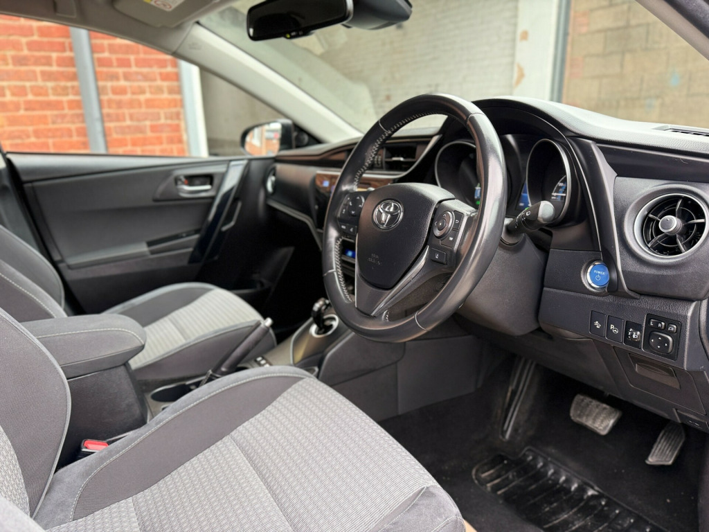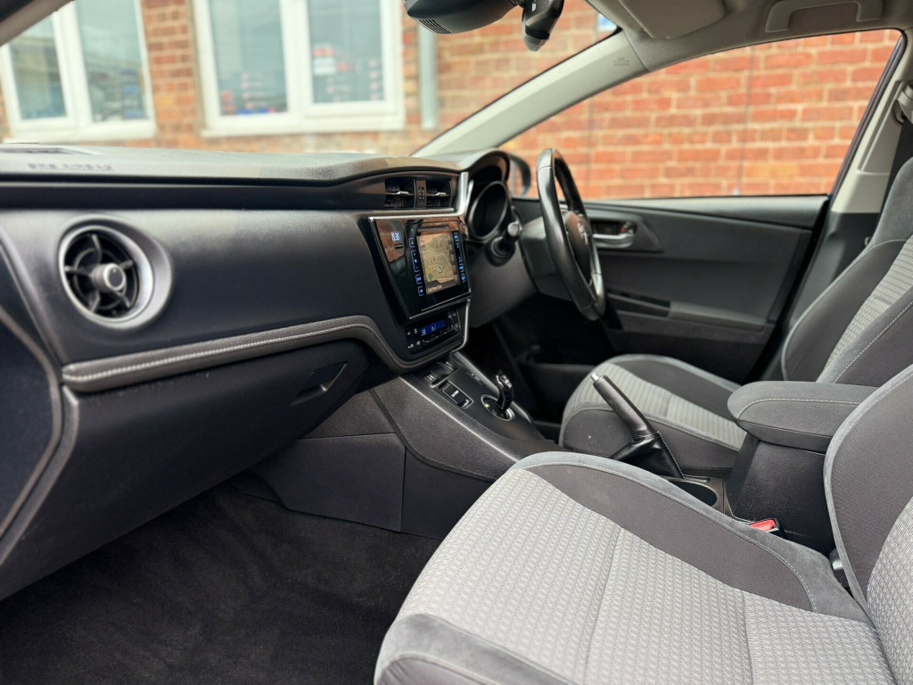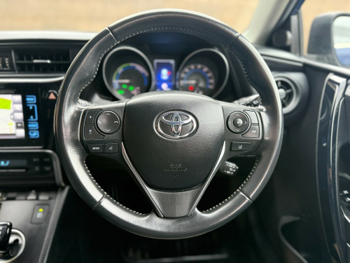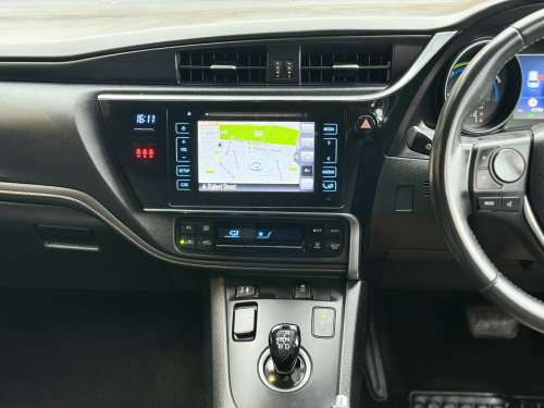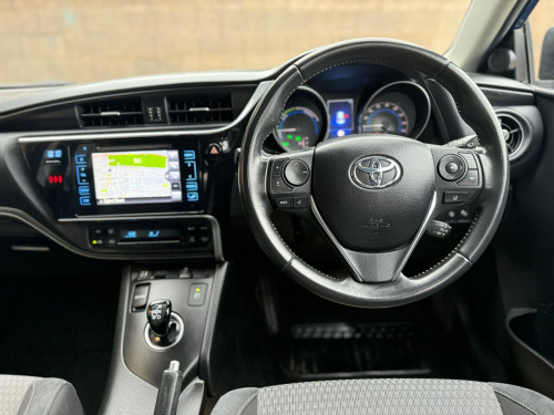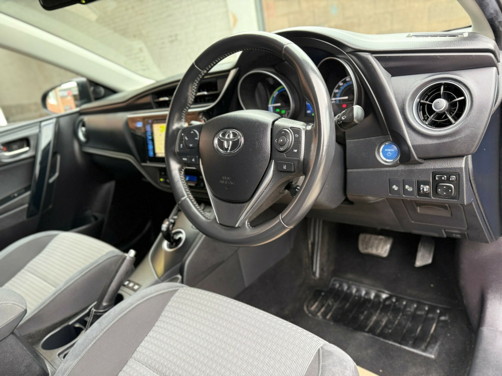 Clean Toyota Auris Hybrid with only 42k miles, full dealership history (8 Toyota stamps), MOT until Mar 2027 and comes with Toyota (manufacturer) warranty until Dec 2026 or 51k miles (whichever comes first, extendable until 2029 or 110k miles with servicing at Toyota). Never been used as a taxi or private-hire. Features include Sat-Nav, Reverse Camera, Bluetooth, Cruise Control, Climate Control, DAB Digital Radio/CD/MP3 Player, Bluetooth Audio, Aux-In, USB Connection, Intelligent Parking Assist, Air-Conditioning, Alloy Wheels, Electric Windows and Foldable Mirrors, etc., in alloy wheels, back lower floating bar - chrome plated, front fog light - bezel - piano black, front fog light - bezel moulding - piano black, lower grille - piano black, lower grille bar - chrome plated, one-touch power windows, power retractable door mirrors, privacy glass, rear reflex reflector bezel - piano black, side sills - piano black, space saver spare wheel, upper grille - chrome plated, 2-ring combimeters with colour tft screen, auto dimming rear view mirror, automatic air conditioning, black soft touch instrument panel, leather steering wheel and gear knob, push button start, rain sensor, whiplash injury lessening - wil - seats, 7in touchscreen with toyota touch 2 multimedia system, am-fm radio, bluetooth phone connectivity and music streaming, cd player, dab digital radio, shark fin antenna, speakers x6, toyota touch 2 with go navigation, usb and aux in, anti lock braking system - abs with electronic brake-force distribution - ebd, ba - brake assist, front passenger airbag on-off switch, front seat belt reminder, hac - hill start assist control, isofix fixing points, parking pack, rear seat belt reminder, remote central locking, seat belt - pre-tensioners and force limiters, supplemental restraint system - srs - airbags - 7 airbags, toyota safety sense, traction control - trc, vsc - vehicle stability control, auto headlights, daytime running lights - led, front fog lights, headlights - halogen, led rear combinations lights with led lightguide, cruise control, electric power steering - eps, front and rear parking sensors, reversing camera, tyre pressure warning system, 2 keys