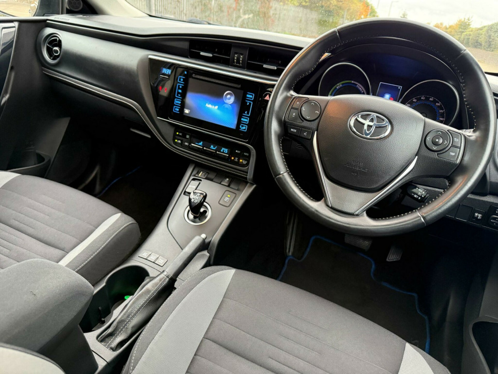 This 2016 Toyota Auris VVT-h Design is a superb example, boasting a clear vehicle history check and having had only two owners from new. Under the bonnet, you'll find an efficient 1.8L Petrol Hybrid engine, meeting Euro 6 emissions standards. This well equipped model includes a Bluetooth Hands Free System for seamless calls, a Rear View Reversing Camera to aid parking, and Automatic Air Conditioning for a comfortable cabin environment. Enjoy your favourite music on the go with Bluetooth Music Streaming.The Auris Design offers practical advantages, indicated by its low insurance group, making it an economical choice for many drivers. Furthermore, the generous boot space ensures you have ample room for shopping, luggage, or any other essentials. These features combined demonstrate how this particular Auris is a more appealing option compared to other vehicles in its class. in alloy wheels, 4.2in coloured tft multi-information display, abs - anti lock braking system, am-fm radio, airbags - curtain front and rear srs, airbags - driver knee srs, airbags - driver srs, airbags - front passenger cut-off switch, airbags - front passenger srs, airbags - front side srs, automatic air conditioning, aux input, bas - brake assist system, back lower floating bar - chrome plated, bluetooth hands free system, bluetooth music streaming, cruise control, dab digital radio, daytime running lights - led, ebd - electronic brakeforce distribution, electric power steering - eps, electric windows - front and rear, electric and heated door mirrors, front fog light - bezel - piano black, front fog light - bezel moulding - piano black, front fog lights, hac - hill start assist control, headlights - halogen, isofix child restraint system, instrument panel - black soft touch, led rear combinations lights with led lightguide, leather gear shift knob, lightguide - led, lower grille - piano black, lower grille bar - chrome plated, pollen filter, privacy glass - rear, push button start, radio and cd player, rear reflex reflector bezel - piano black, rear view reversing camera, remote central locking, seat belt reminder - front and rear, seats - anti-whiplash design, shark fin antenna, space saver spare wheel, speakers x6, steering wheel - leather, touch screen - 7in high resolution, traction control - trc, trip computer, two ring combimeters - satin chrome-plated, tyre pressure warning system, usb connection, upper grille - chrome plated, vsc - vehicle stability control, panoramic roof, reversing camera, cruise control, bluetooth phone.