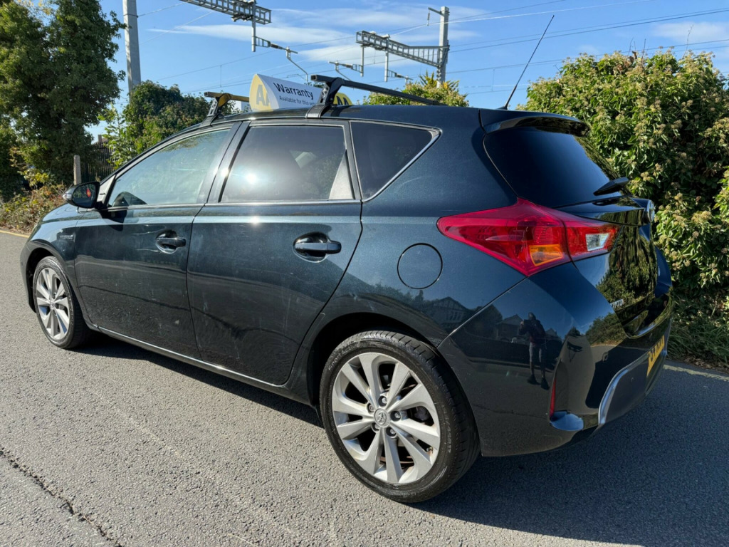 With a full service history, this 2014 Toyota Auris 1.8L Petrol Hybrid VVT-h Excel, in Excel trim, offers complete peace of mind. It comes with a 3-month warranty and a fresh 12 months MOT, ensuring it's road-ready. This Auris is equipped with parking sensors at the front and rear, making parking a breeze. The dual-zone climate control and automatic headlights add to the comfort and convenience, while the Bluetooth hands-free system keeps you connected on the go. The last service was carried out at 104000 miles.This Auris stands out with its low insurance group, potentially saving you money on your premiums. The vehicle also boasts a large boot space, making it more practical than similar vehicles for shopping trips, family holidays, or simply carrying everyday items.. 12V Socket, 12V Socket - Luggage Compartment, 17in Alloy Wheels, ABS - Anti Lock Braking System, Air Conditioning - Climate Control- Dual Zone, Airbags - Curtain Front and Rear, Airbags - Driver, Airbags - Driver Knee, Airbags - Front Passenger, Airbags - Front Passenger Cut-Off Switch, Airbags - Front Side, Auto Dimming Rear View Mirror, Automatic Phonebook Download, BAS - Brake Assist System, Bluetooth Hands Free System, Body Shell with High Tensile Steel Elements, Bumpers - Body Coloured, Centre Console with Lid, Child Protection Locks, Comfort Pack, Crash-Resistant Body Structure, Cruise Control with Speed Limiter, DAB Digital Radio, Daytime Running Lights - LED, Door Handles - Body Coloured, Door Mirrors - Body Colour, Door Mirrors - Electrically Heated and Retractable, Door Mirrors - Integrated Turning Light Colour-Keyed Electric and Heated, Dual Glovebox, Dusk Sensor, EBD - Electronic Brakeforce Distribution, Electric Power Steering - EPS, Electric Windows - Front and Rear, Follow Me Home Headlights, Front Fog Lights, Front Intermittent Wipers with Adjustable Interval, Gear Shift Indicator - GSI, HAC - Hill Start Assist Control, ISOFIX Child Restraint System, Immobiliser, In Dash Driver and Front Passenger Cupholders, Leather Gear Shift Knob, Locking Wheel Nuts, Multi Information Display, Optitron Display, Overhead Console, Park Assist, Parking Sensors - Front, Parking Sensors - Rear, Radio and CD Player with MP3 and WMA, Rain Sensing Wipers, Rear 12V Power Outlet, Rear Headrests x3, Rear Privacy Glass, Rear Seats 60-40 Split Folding, Rear Seats with Tilt Down and 2 Position Reclining Mechanism, Rear Spoiler, Rear View Camera, Rear Window Defogger, Rear Wiper with Interval, Remote Central Locking, Roof Antenna, Seat Belt Warning - Light and Buzzer, Seats - Anti-Whiplash Design, Seats - Drivers Electric Lumbar Support, Seats - Drivers Height Adjustment, Seats - Front Seat-Back Pockets, Seats - Heated Front, Side Impact Beams, Smart Entry and Smart Start System, Speakers x6, Steering Wheel - Audio Controls, Steering Wheel - Leather, Storage - Door Pockets, Tilt and Telescopic Adjustable Steering Wheel, Toyota Touch, Traction Control - TRC, Tyre Repair Kit, USB and Aux In, VSC - Vehicle Stability Control. Full service history