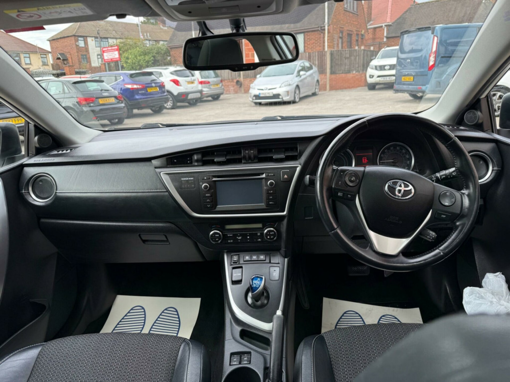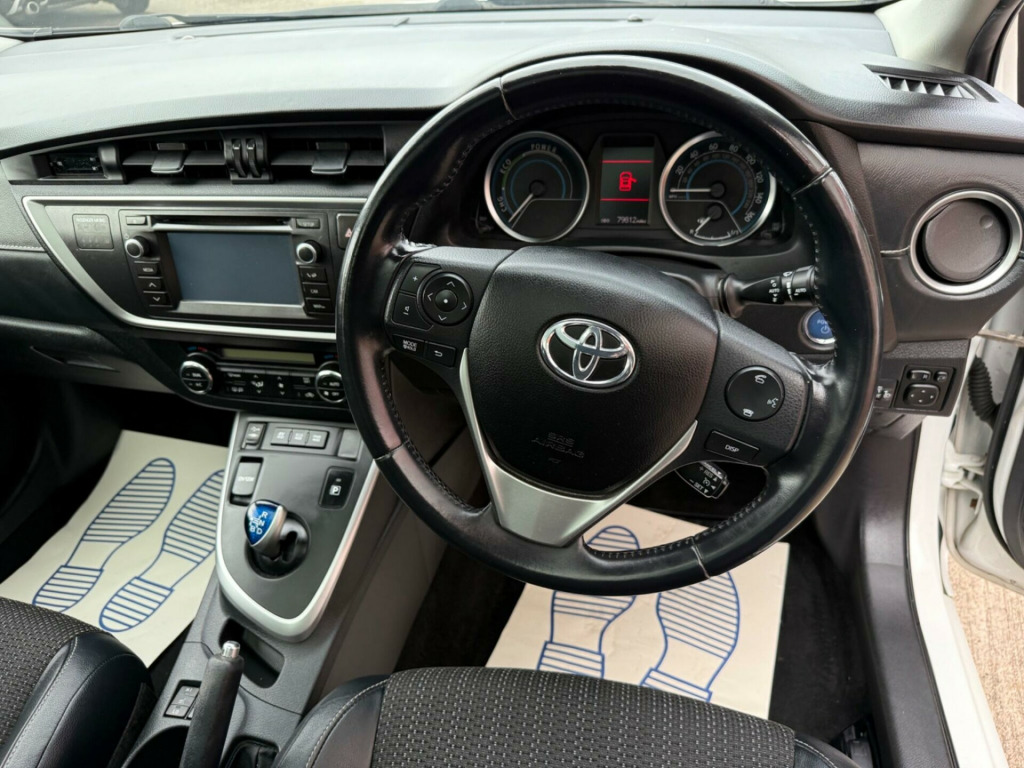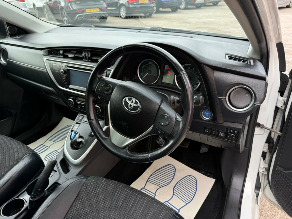 2 KEYS , 12 MONTHS MOT. AND GREAT SERVICE HISTORY. NEED FINANCE? PLEASE GIVE US A CALL OR VISIT OUR WEBSITE TO QUOTE OR APPLY ONLINE.VIEWING ESSENTIALThis 2015 Toyota Auris VVT-h Excel offers an exceptional blend of efficiency and practicality, making it a smart choice for any driver. Powered by a 1.8L petrol hybrid engine, this model combines smooth performance with impressive fuel economy. The Excel trim level ensures a well equipped interior, featuring convenient Bluetooth connectivity for seamless audio streaming and handsfree calls. Parking is made easier with the integrated rear parking camera, and you can enjoy added comfort during colder months thanks to the heated front seats. Automatic headlights, activated by a dusk sensor, provide enhanced visibility, while the smart entry and smart start system offers keyless access and ignition for ultimate convenience.Beyond its impressive features, this Toyota Auris stands out with its low insurance group, which can help reduce your running costs. Furthermore, you'll appreciate the generous boot space, providing ample room for shopping, luggage, or sports equipment. These highlights demonstrate how this Auris Excel is designed to offer a superior driving experience compared to other vehicles in its class, combining advanced technology with everyday usability and cost effectiveness., in alloy wheels, abs - anti lock braking system, air conditioning - climate control- dual zone, airbags - curtain front and rear, airbags - driver, airbags - driver knee, airbags - front passenger, airbags - front side, auto dimming rear view mirror, bluetooth connectivity, body coloured door mirrors, cruise control, dab digital radio, daytime running lights - led, door mirrors - electrically heated and retractable, dual-level deckboard, dusk sensor, ebd - electronic brakeforce distribution, electric power steering - eps, electric windows - front and rear, front fog lights, google street view, hac - hill start assist control, high resolution touch screen, instrument panel - leather inlay, intelligent park assist, leather gear shift knob, multimedia connectivity, parking pack, parking sensors - front, parking sensors - rear, privacy glass - rear, radio and cd player, rain sensing wipers, rear parking camera, remote central locking, seats - electric lumbar support, seats - heated front, smart entry and smart start system, smart phone functionality, speakers x6, steering wheel - leather, tomtom real time traffic, toyota touch 2 with go navigation, traction control - trc, tyre pressure warning system, vsc - vehicle stability control