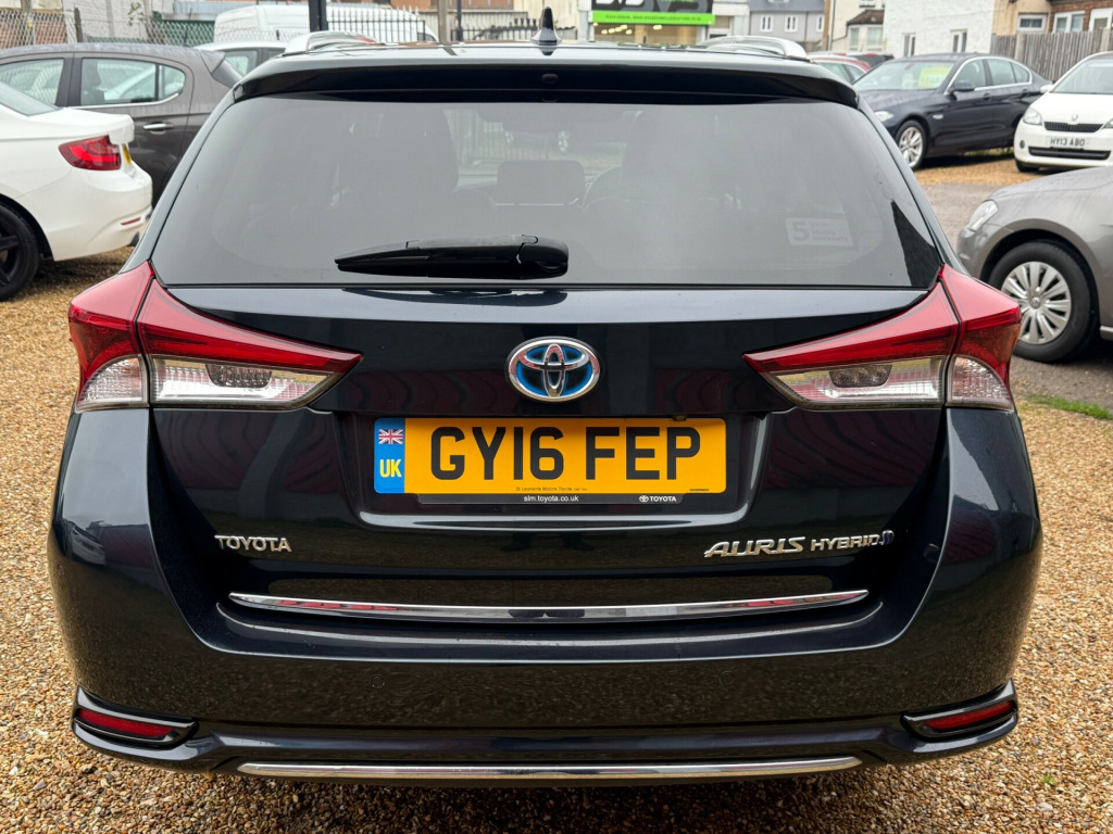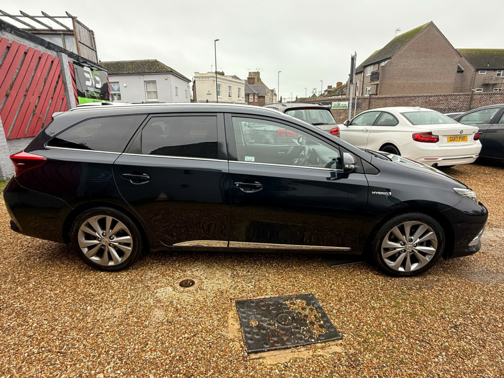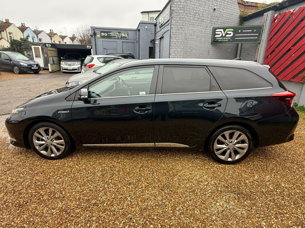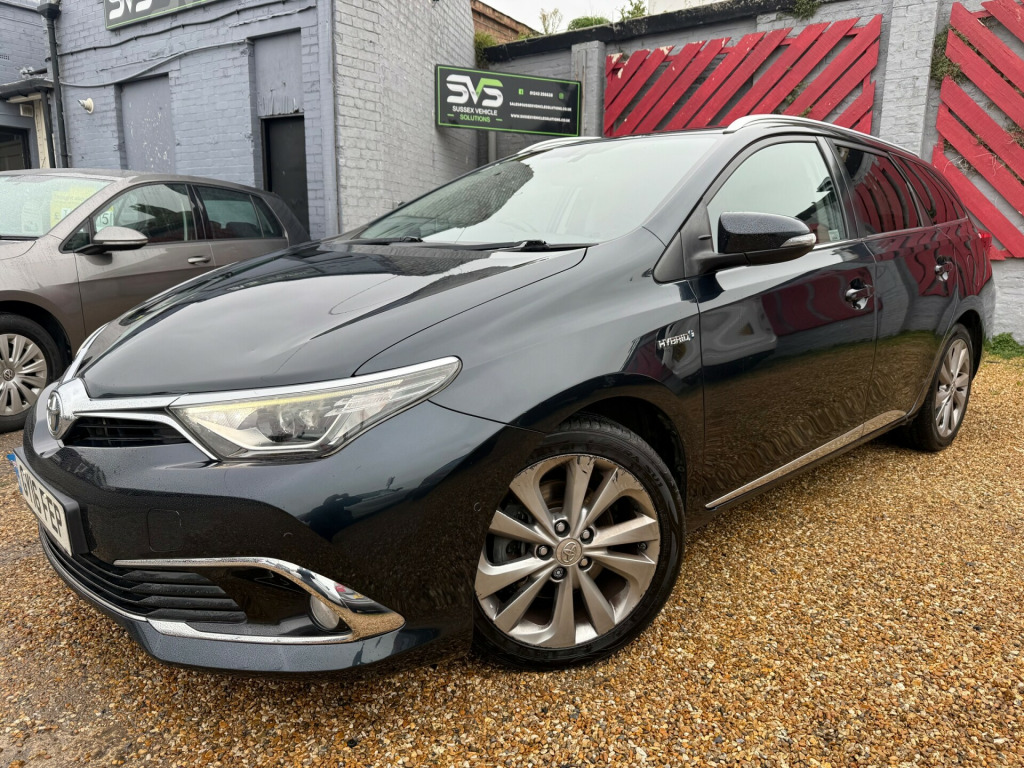 Sussex Vehicle Solutions Ltd are delighted to present this Toyota Auris 1.8 VVT-h Excel Touring Sports 5dr Petrol Hybrid CVT. Across all our stock, we ensure servicing is up to date, that there is at least 6 months MOT remaining, and we provide warranty options of 3/6/12 months. As an AA Approved dealership, all vehicles come with 12 months AA breakdown cover free of charge. We can offer bespoke finance packages to suit all deal sizes and credit profiles, with rates starting from 8.9% APR. Sussex Vehicle Solutions is a family run business and we pride ourselves on giving excellent customer service in a pressure-free environment. If you have any questions, please do not hesitate to get in touch. in alloy wheels, back lower floating bar - chrome plated, door mirrors - electrically heated and retractable, electric windows - front and rear, front fog light - bezel - piano black, front fog light - bezel moulding - chrome plated, lightguide - led, lower grille - piano black, lower grille bar - chrome plated, privacy glass - rear, rear reflex reflector bezel - piano black, space saver spare wheel, upper grille - chrome plated, 4.2in coloured tft multi-information display, am-fm radio, aux input, bluetooth hands free system, bluetooth music streaming, dab digital radio, radio and cd player, shark fin antenna, speakers x6, touch screen - 7in high resolution, toyota touch 2 with go plus navigation, usb connection, abs - anti lock braking system, airbags - curtain front and rear srs, airbags - driver knee srs, airbags - driver srs, airbags - front passenger cut-off switch, airbags - front passenger srs, airbags - front side srs, bas - brake assist system, ebd - electronic brakeforce distribution, hac - hill start assist control, isofix child restraint system, parking pack, seat belt reminder - front and rear, smart entry system, traction control - trc, vsc - vehicle stability control, air conditioning - climate control- dual zone, auto dimming rear view mirror, instrument panel - black soft touch, leather gear shift knob, pollen filter, push button start, rain sensing wipers, seats - anti-whiplash design, seats - heated front, seats - lumbar support, steering wheel - leather, two ring combimeters - satin chrome-plated, cruise control, electric power steering - eps, intelligent park assist, parking sensors - front, parking sensors - rear, rear view reversing camera, trip computer, tyre pressure warning system, daytime running lights - led, front fog lights, headlights - bi-led, led rear combinations lights with led lightguide