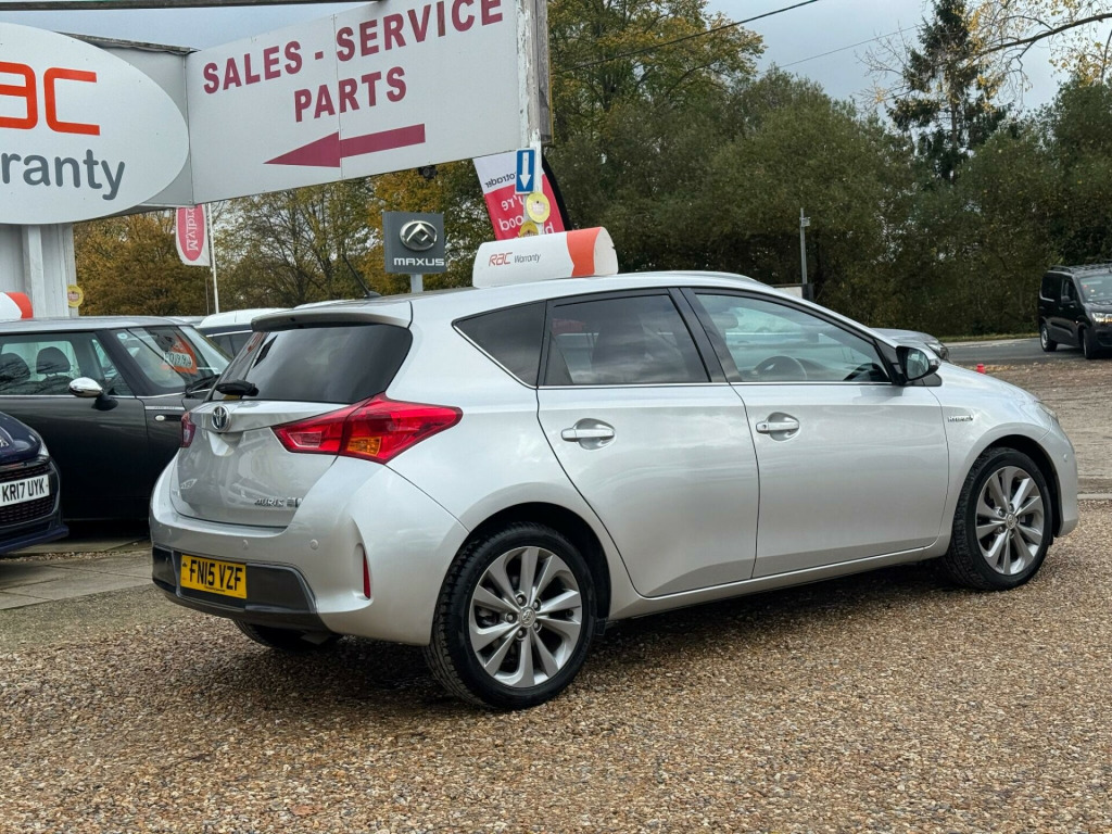 This 2015 Toyota Auris VVT-h Excel presents an exceptional ownership proposition with its remarkably low mileage of just 24,603 miles, a full dealership service history, and only two previous owners. This Euro 6 compliant 1.8L petrol hybrid model, finished in the Excel trim, offers a blend of efficiency and refinement. Inside, you will find desirable features such as dual zone climate control, heated front seats for added comfort, and a smart entry system allowing for keyless entry. The integrated Bluetooth hands free system ensures you can stay connected safely on the go, while front parking sensors provide assistance when manoeuvring.The very low mileage for its age, combined with its low insurance group, makes this Auris an economical choice for many drivers. Furthermore, the generous boot space ensures practicality for everyday needs and longer journeys alike. These factors, alongside its comprehensive service record, indicate that this particular Toyota Auris has been well cared for and stands out from other vehicles of its kind.. 17in Alloy Wheels, 4.2in Coloured TFT Multi-Information Display, ABS - Anti Lock Braking System, AM-FM Radio, Air Conditioning - Climate Control- Dual Zone, Airbags - Curtain Front and Rear SRS, Airbags - Driver Knee SRS, Airbags - Driver SRS, Airbags - Front Passenger Cut-Off Switch, Airbags - Front Passenger SRS, Airbags - Front Side SRS, Auto Dimming Rear View Mirror, Aux Input, BAS - Brake Assist System, Back Lower Floating Bar - Chrome Plated, Bluetooth Hands Free System, Bluetooth Music Streaming, Cruise Control, DAB Digital Radio, Daytime Running Lights - LED, Door Mirrors - Electrically Heated and Retractable, EBD - Electronic Brakeforce Distribution, Electric Power Steering - EPS, Electric Windows - Front and Rear, Front Fog Light - Bezel - Piano Black, Front Fog Light - Bezel Moulding - Chrome Plated, Front Fog Lights, HAC - Hill Start Assist Control, Headlights - Bi-LED, ISOFIX Child Restraint System, Instrument Panel - Black Soft Touch, Intelligent Park Assist, LED Rear Combinations Lights with LED Lightguide, Leather Gear Shift Knob, Lightguide - LED, Lower Grille - Piano Black, Lower Grille Bar - Chrome Plated, Parking Pack, Parking Sensors - Front, Parking Sensors - Rear, Pollen Filter, Privacy Glass - Rear, Push Button Start, Radio and CD Player, Rain Sensing Wipers, Rear Reflex Reflector Bezel - Piano Black, Rear View Reversing Camera, Seat Belt Reminder - Front and Rear, Seats - Anti-Whiplash Design, Seats - Heated Front, Seats - Lumbar Support, Shark Fin Antenna, Smart Entry System, Space Saver Spare Wheel, Speakers x6, Steering Wheel - Leather, Touch Screen - 7in High Resolution, Toyota Touch 2 with Go Plus Navigation, Traction Control - TRC, Trip Computer, Two Ring Combimeters - Satin Chrome-Plated, Tyre Pressure Warning System, USB Connection, Upper Grille - Chrome Plated, VSC - Vehicle Stability Control. Full dealership history