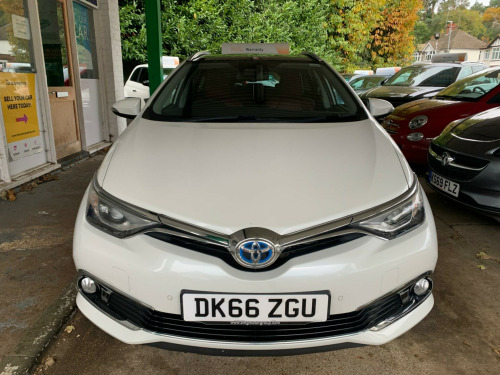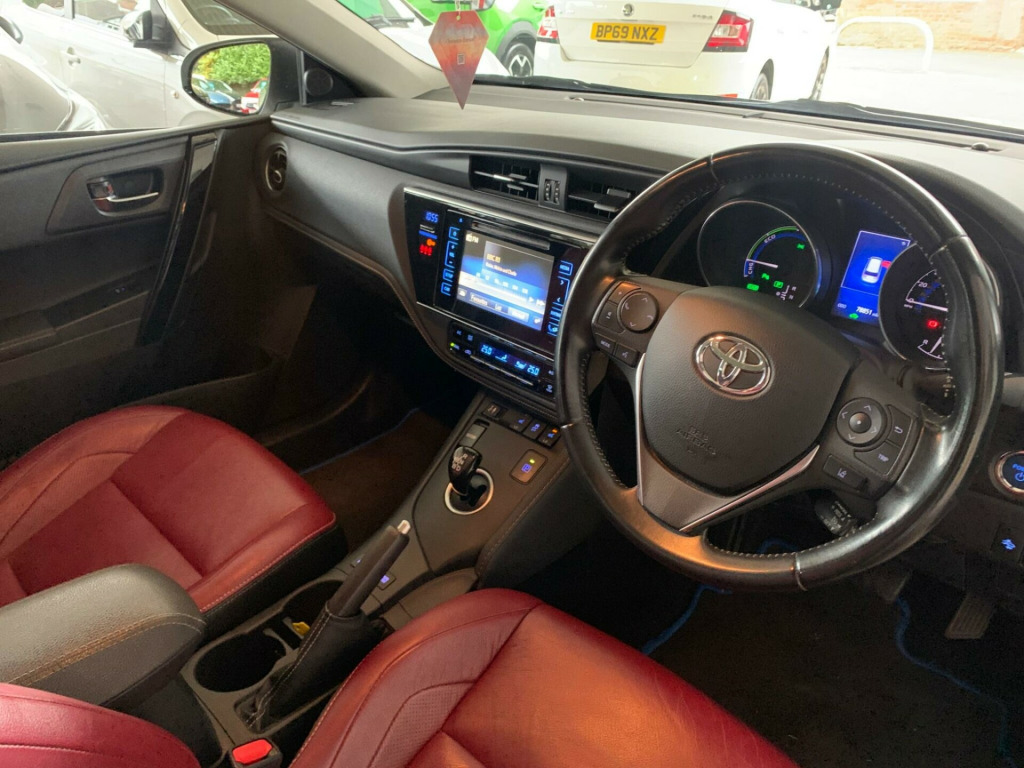 Automatic, Satellite Navigation, Full Leather, HPI Clear, Fully Inspected, This 2016 Toyota Auris VVT-h Excel presents a superb ownership proposition, having been cared for by only two owners. Under the bonnet, you'll find an efficient 1.8L Petrol Hybrid engine, compliant with Euro 6 emissions standards, offering a blend of performance and economy. This well appointed Excel trim level includes desirable features such as heated front seats for those colder mornings, a dusk sensor that automatically activates the headlights, and a Bluetooth hands free system for seamless connectivity. Convenience is further enhanced by the smart entry system, allowing keyless entry, and a rear view reversing camera to aid with parking.The generous boot space in this Auris ensures you have ample room for shopping, luggage, or any other essentials. Furthermore, its placement in a low insurance group indicates that running costs are likely to be more affordable compared to similar vehicles. These highlights, combined with the vehicle's efficient hybrid technology and thoughtful features, make this Toyota Auris a practical and appealing choice. in alloy wheels, 4.2in coloured tft multi-information display, abs - anti lock braking system, am-fm radio, air conditioning - climate control- dual zone, airbags - curtain front and rear srs, airbags - driver knee srs, airbags - driver srs, airbags - front passenger cut-off switch, airbags - front passenger srs, airbags - front side srs, auto dimming rear view mirror, automatic high beam, autonomous emergency braking, aux input, bas - brake assist system, back lower floating bar - chrome plated, bluetooth hands free system, bluetooth music streaming, cruise control, dab digital radio, daytime running lights - led, door mirrors - electrically heated and retractable, dusk sensor, ebd - electronic brakeforce distribution, electric power steering - eps, electric windows - front and rear, forward collision warning, front fog light - bezel - piano black, front fog light - bezel moulding - chrome plated, front fog lights, hac - hill start assist control, headlights - bi-led, isofix child restraint system, instrument panel - black soft touch, intelligent park assist, led rear combinations lights with led lightguide, lane departure warning, leather gear shift knob, lightguide - led, lower grille - piano black, lower grille bar - chrome plated, parking pack, parking sensors - front, parking sensors - rear, pollen filter, pre-collision brake assist, privacy glass - rear, push button start, radio and cd player, rain sensing wipers, rear reflex reflector bezel - piano black, rear view reversing camera, seat belt reminder - front and rear, seats - anti-whiplash design, seats - heated front, seats - lumbar support, shark fin antenna, smart entry system, space saver spare wheel, speakers x6, steering wheel - leather, touch screen - 7in high resolution, toyota touch 2 with go plus navigation, traction control - trc, traffic sign recognition, trip computer, two ring combimeters - satin chrome-plated, tyre pressure warning system, usb connection, upper grille - chrome plated, vsc - vehicle stability control