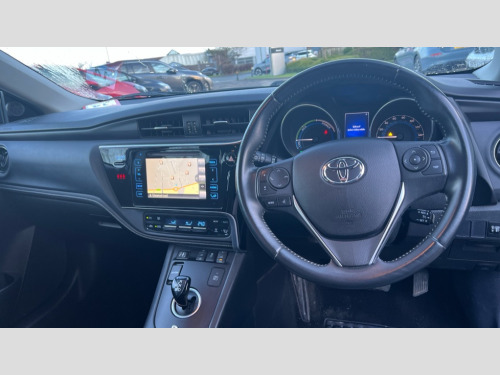 Toyota Auris 1.8 Hybrid Business Edition 5dr CVT 7" touch screen, Cruise control, PAS, Push button starter, Rear view camera, Touch 2 Go navigation system, 6 speakers, Bluetooth connectivity including audio streaming, DAB Digital radio, Radio/CD + MP3, USB/aux input socket, Body colour bumpers, Body colour door mirrors, Chrome bars on lower front grille, Chrome fog lamp bezel, Electric front windows, Electric rear windows, Front fog lights, LED daytime running lights, LED rear lights, Lower grille finisher - Piano black, Rear wiper, Auto air conditioning, Drivers/passenger heated seats, Electric lumbar support, Front and rear headrests, Isofix child seat preparation, Leather gear knob, Leather steering wheel, Ventura cloth upholstery, 3x3 point rear seatbelts, ABS/EBD, Driver/Front Passenger airbags, Drivers knee airbag, Front and rear curtain airbags, Front lateral airbags, Hill start assist, Passenger airbag deactivate switch, Seatbelt pretensioners and force limiters, Seatbelt warning, Vehicle stability control + traction control + brake assist, Black instrument panel, Space saver spare wheel