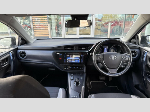 This 2017 Toyota Auris VVT-h Business Edition presents an exceptional opportunity with its remarkably low mileage of just 40,424 miles, a significant advantage for its age. As a Toyota manufacturer approved vehicle, you can be assured of its quality and reliability. This Euro 6 compliant model features a 1.8L petrol hybrid engine, offering an efficient and smooth driving experience. Inside, you'll find comfortable heated front seats, convenient Bluetooth music streaming, and automatic air conditioning for a pleasant journey. The Business Edition trim also includes a dusk sensor for automatic headlights and a rear view reversing camera to aid with parking.