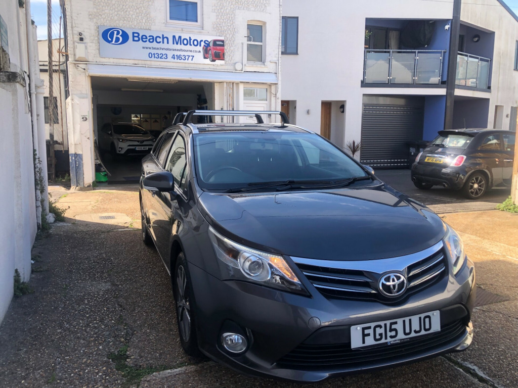 2015 Toyota Avensis 1.8 V-Matic Icon Business Edition Tourer. Reliable estate car with a petrol engine (very rare) and 59000 miles on the clock. ULEZ compliant. Full service history (7 main dealer, 9 services in total). 2 keys. Roof rack. factory tinted windows. Reverse parking camera. All our cars come with:* Full service * New MOT * 2 years' warranty (parts and labour - up to £2,000 claim) * 2 years' breakdown cover * ''Supagard'' valet inside and out All cars are HPI clear. FINANCE AVAILABLE - please see our finance calculator. Please call 01323 416377/07710476938 or email hsafarilive.co.uk for more information, or visit the showroom at 14 Beach Road, Eastbourne, East Sussex BN21 7EX. r conditioning, bluetooth connection, multi-function steering wheel, electric mirrors, electric windows, alloy wheels