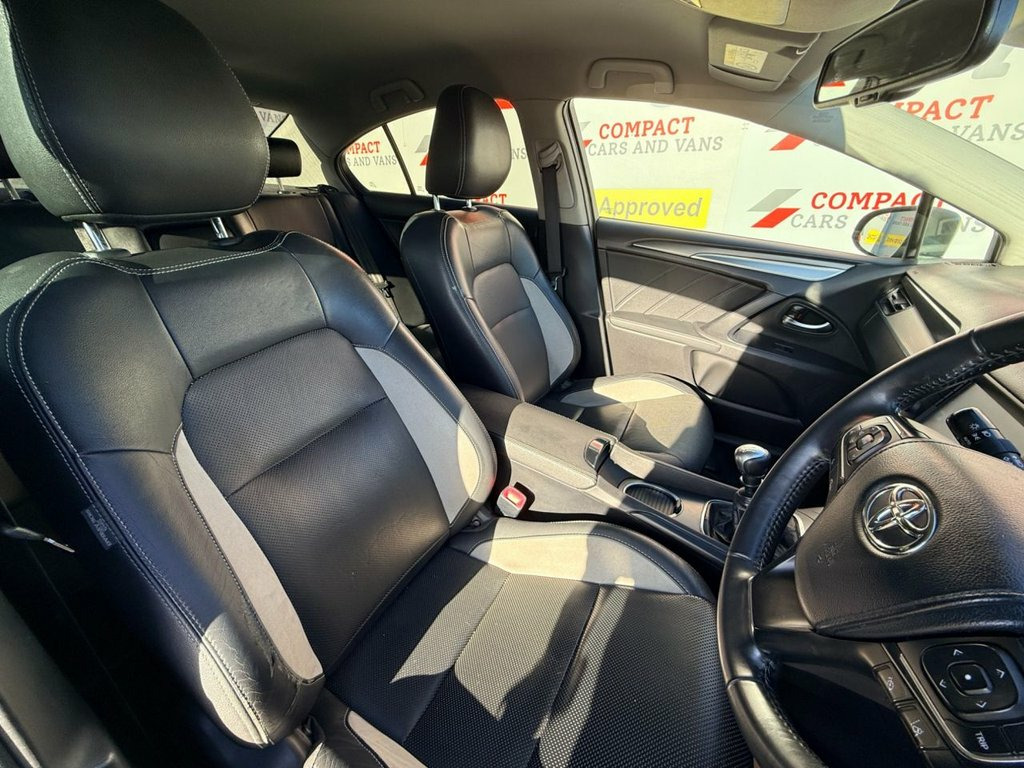 The Toyota Avensis offers a refined blend of comfort, efficiency, and understated style. Powered by a robust 2.0-litre diesel engine delivering 143 PS, this Euro 6-compliant model pairs smooth manual transmission with stop/start technology for enhanced fuel economy and lower emissions. Its sleek saloon silhouette is complemented by sharp design cues, alloy wheels, and LED daytime running lights, giving it a confident road presence without shouting for attention. Inside, the Avensis Design trim impresses with a spacious, well-appointed cabin featuring dual-zone climate control, a touchscreen infotainment system with navigation, Bluetooth connectivity, and a reversing camera for added convenience. Supportive seats and quality materials make long journeys a pleasure, while Toyota's reputation for reliability ensures peace of mind. Whether you're commuting or cruising, this Avensis delivers a composed drive with the practicality and polish that savvy buyers appreciate. 18in Alloy Wheels, 3-Spoke Leather Steering Wheel - Manual , 4.2in Colour TFT Driver Information Scre, 8in Multimedia Touchscreen, ABS - Anti Lock Braking System, AM-FM Radio, Auto Dimming Rear View Mirror, Automatic Air Conditioning, Automatic High Beam, Autonomous Emergency Braking, BA - Brake Assist, Black Centre Console, Bluetooth Phone Connectivity and Music S, Body-Coloured Front Bumpers - Door Handl, Chrome Insert on Upper Front Grille, Chrome Window Frame, Cruise Control, DAB Digital Radio, Driver - Front and Rear Passenger Person, Driver and Front Passenger Sun Visors - , Driver and Front Passenger Whiplash Inju, Dusk Sensing Headlights, EBS - Emergency Brake Signal, Electronic Park