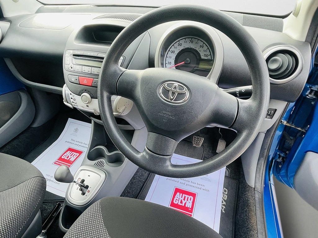 Open 7 days until late for evening indoor viewings . Automatic ! First time driver ! Lowest Insurance group ! £20 Tax Model, Immaculate Condition ! Full Service History ! Just Serviced and fully prepared. Factory Toyota Bluetooth Phone. All 4 Tyres are nearly New, 14 Wheels. Daytime Running LED Lights. 5 Speed Automatic gearbox. Paddle Shift. 12 Months MOT, carried out with No Advisories. ICE Cold Air Conditioning. AUX port for Music streaming, Machine polished. Full and Complete Leather Toyota Binder with all manuals present. , , We are a specialist in providing New drivers their first car. Low Insurance group, affordable quality cars. We only stock small, first time cars and have plenty to choose from, give us a call as stock changes daily. Full indoor Dealer facilities available, Finance packages to suit every need. ANY Part Exchange Welcome. 5 Day drive away Insurance can be included, 3 months Nationwide Warranty included. See our 5 * Autotrader and 5* Trust Pilot reviews for confidence. Reserve this car on our Website to avoid disappointment, Apply for Finance Direct from our Website or Book a test drive ! Ready to DRIVE AWAY TODAY
