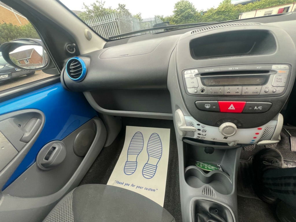 HPI CELAR, ULEZ COMPLIANT, Here we have another popular economical Aygo with 5 doors for sale, drives nice without any fault/issue, chilled A/C, 2-keys, good service history, New clutch fitted recently.This car also comes with free 12 months AA-Breakdown cover, AA-approved dealer, all major Debit/Credit Cards accepted, finance options available, we are FCA registered and work with all major Finance companies. We have a wide selection of cars, all our stock is carefully picked, so you can buy from us with confidence. Each vehicle undergoes a thorough inspection by a highly qualified specialist, all our vehicles are HPI checked. Looking to part exchange we guaranty the best prices paid for your trade in vehicle, you can reserve any of our cars with a refundable £99 deposit. Nationwide Delivery Available, 5 days drive away insurance and extended warranty packages are also available at extra reasonable price. Please don't hesitate to call us if you need any more info about this car. Visit www.mabauto.co.uk for more stock options, if we don't have the particular car you are looking for in our stock we can always find you one, Read our reviews on auto trader and judge for yourself what our customers think about us, WE ARE AUTO TRADER ''HIGHLY RATED CUSTOMER SERVICE AWARD WINNER 2020 &2021''The vehicle specification displayed may not be exact for this vehicle. Please contact us to confirm the precise specifications. in steel wheels