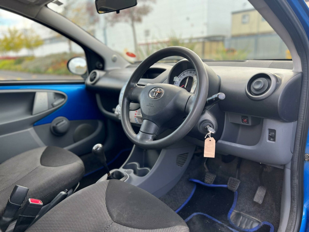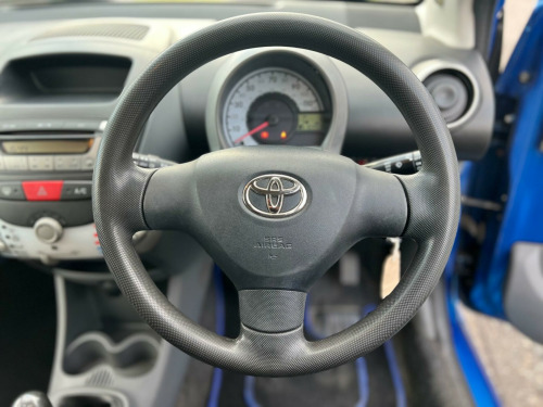 2011 Toyota Aygo 1.0 petrol finished in blue. 103,000 warranted miles on the clock. MOT til 30th September 2026. Only £20 for yearly road tax! 3 former keepers from new. Full service history available; 13 services, 3 Main dealers. Last serviced on 19/09/2025 at 103,533 miles. Car drives well with no mechanical faults. Full V5 available. Comes with a top spec including; alloy wheels, leather steering wheel, Radio/CD, electric windows, central locking, AC/Climate control, TPMS, cup holders and many more. Nationwide Delivery Available. P/X Welcome. HPI Clear. 2 Keys. ULEZ Compliant. Any questions do not hesitate to contact us. 07443456706 in steel wheels
