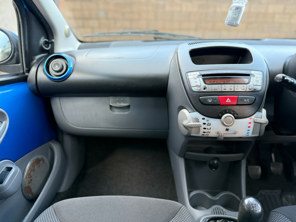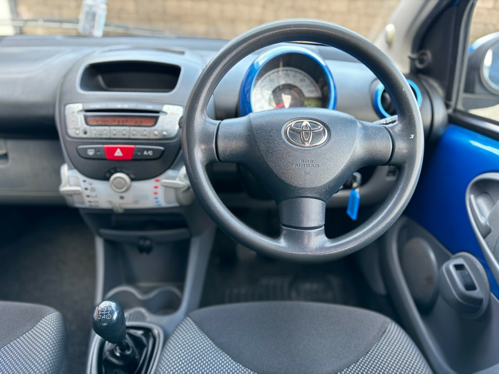 Clean Toyota Aygo with only 52k miles, service history and MOT until Oct 2026. Only £20 annual road-tax. Cheap to insure, maintain and run. Features include Bluetooth, Air-Conditioning, CD/MP3 Player, Aux-In, Remote Central Locking, Power Assisted Steering, Electric Windows, etc, in steel wheels, 2 keys, telephone equipment