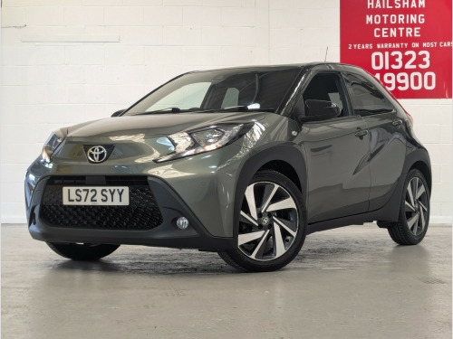 **Manufacturer's warranty until 10/2027** Hailsham Motoring Centre are pleased to be offering this ULEZ compliant 2022 Toyota Aygo X 1.0 VVT-i Edge 5dr for sale, with ONLY ONE OWNER FROM NEW and 69,200 miles. This car comes with FULL MAIN DEALER SERVICE HISTORY. The car will leave with an interim service, a new MOT and a PDI. Finished in Bi Tone Metallic Cardamom Green with charcoal cloth trim. **WHY BUY FROM US****Established In 1980****24 Month Warranty On All Cars & vans Over £4500, & Those Not Covered By A Manufactures Warranty** ** All Our Cars Are Hpi Clear So You Can Buy With Confidence****Competitive Finance Rates Subject To Status****Multi Branches****Open 7 Days a Week Inc Bank Holidays****Monday - Friday - 8.30am to 6pm****Saturday - 9.00am to 5pm****Sunday - 10am to 4pm****Bank holidays 10am to 4pm**For more pictures and a walk around video please go to https://www.hailshammotoringcentre.co.uk/Please call to arrange viewing and a test drive on 01323 449900.Here at Hailsham Motoring Centre, we have up to 50 cars & a small selection vans on show, also at our Hampden Park branch we have up to 50 further cars & a small selection vans available for viewing, please call 01323 507307 for more info.For more information on our Aygo please see the benefits below as stated, 2'' tft colour screen, adjustable speed limiter, analogue speedometer, bluetooth connectivity, digital tachograph, driver attention alert system, ecall emergency call system, electric power steering, intersection turn assist, key reminder warning, noise reduction kit, pre collision system with emergency steering assist, reversing camera with static guide lines, smart phone integration with apple car play/android auto, speed limit display, start and stop, vehicle stability control (vsc), 4 speakers, dab digital audio broadcast, toyota touch 2 multimedia system with 8'' screen display, usb connector, auto headlights, auto wipers, automatic headlights cut-off, bicycle towing hook, black fog light surrounds, black side protection mouldings, black wheel arch mouldings, body colour door handles, body coloured front bumper, boot door scuff plate, eclipse black rear bumper, electric heated door mirrors, follow me home headlights, front fog lights, front power windows, gloss black door mirrors, gloss black upper front grille, headlight cut-off reminder, led daytime running lights, led front light guide, led high mounted stop lamp, manual day/night rear view mirror, manual headlight levelling, pagoda roof, power adjustable door mirrors, privacy glass, projector halogen headlights, rain sensor, rear combination lights led bulb type, rear side wing doors, rear windscreen defogger, rear windscreen wiper, short antenna, variable intermittent windscreen wipers, 12v power outlet - front, 2 seat bench in 2nd row, 3 spoke leather steering wheel, 50/50 split folding rear seat, adhesive roof headlining, adjustable speed limiter switch on steering wheel, audio and telephone switches on steering wheel, auto air conditioning, black insert on steering wheel, black roof lining, boot light, centre room light, chrome interior door handles, chrome surround on air conditioning buttons, clean air filter, fabric upholstery, floor mats, front and rear cup holders, front head rest deco art, front head restraints, height adjustable driver seat, intelligent adaptive cruise control switch on steering wheel, isofix child restraint system on rear seats, lane departure alert switch on steering wheel, leather gearshift knob, manual tilt steering wheel, manually reclining and sliding driver seat, manually reclining and sliding front passenger seat, multimedia switches on steering wheel, pollen filter, rear door pockets, rear head restraints, satin silver insert on gear shift knob, single compartment glovebox with lights, single front passenger seat, soft tonneau cover, sun visors with mirror on driver and passenger side, voice recognition switch on steering wheel, toyota safety sense pack - aygo x, anti lock braking system + electronic brake force distribution, child safety door lock, emergency brake light signal (ebs), hill start assist control (hac), passenger airbag on/off switch, seat belt reminder for front and rear seats, supplement restraints system (srs) - 6 airbags, traction control, tyre pressure warning system, immobiliser, remote power door locks, black wheel centre caps, tyre repair kit, manufacturers warranty, 18'' Alloys