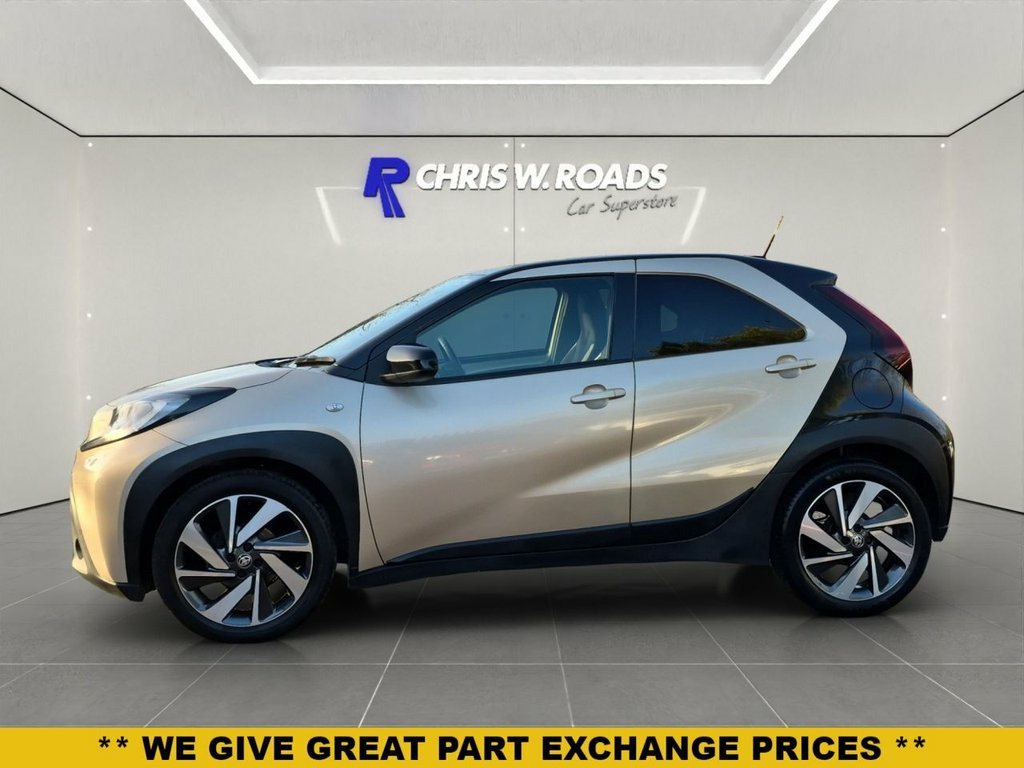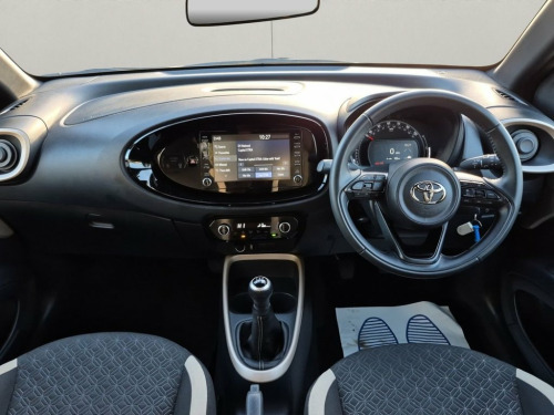 This 2022 Toyota Aygo X VVT-i Edge presents an exceptional opportunity with remarkably low mileage for its age, having covered just 17,702 miles. This Euro 6 compliant model boasts a 1.0L petrol engine and comes with an MOT valid until June 2026, offering peace of mind for the road ahead. Inside, you'll find a host of convenient features designed to enhance your driving experience, including a reversing camera with parking assistance, intelligent adaptive cruise control accessible via the steering wheel, automatic air conditioning for perfect cabin comfort, and Bluetooth connectivity for seamless phone integration. The Aygo X VVT-i Edge stands out with its impressive fuel economy, achieving a remarkable 59 miles per gallon, which is a significant advantage for everyday driving costs. Furthermore, its low insurance group rating means more savings on your annual premiums, and its low CO2 emissions contribute to a more environmentally friendly drive. These highlights collectively demonstrate how this Aygo X offers a more economical and practical choice compared to many other vehicles in its class. Comes with 2 Toyota stamps in the Service Book with the last service carried out June '25 at 15,917 miles and it has 2 Keys. See below for its full list of features. Book today to view and test drive. Open 7 days a week. All part exchanges welcome. Please ask for details of our finance and extended warranty options, subject to status, T's and C's apply. 8in Toyota Touch Multimedia System, Smartphone Integration with Apple Car Pl, Intelligent Adaptive Cruise Control Swit, Reversing Camera, Bluetooth Connectivity, DAB Digital Radio, Automatic Air Conditioning, 18in Alloy Wheels, USB Connector, Drivers Height Adjustment, Front Power Windows, Voice Recognition Switch on Steering Whe, Audio Switches on Steering Wheel, 3-Spoke Leather Steering Wheel, Manual Tilt Steering Wheel, Black and White Fabric Upholstery, 50-50 Split Folding Rear Seats, Halogen Headlights , Auto Headlights, Auto Wipers, Rear Privacy Glass, Power-Adjustable Door Mirrors, Front Fog Lights, Gloss Black Door Mirrors , Brass Gold with Black Roof, ABS - Anti Lock Braking System