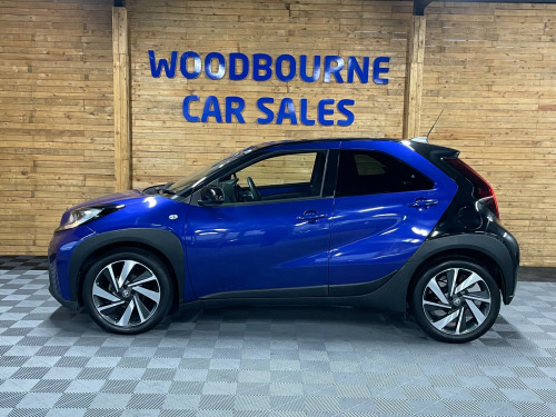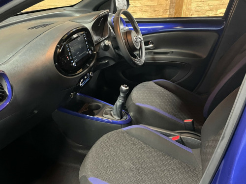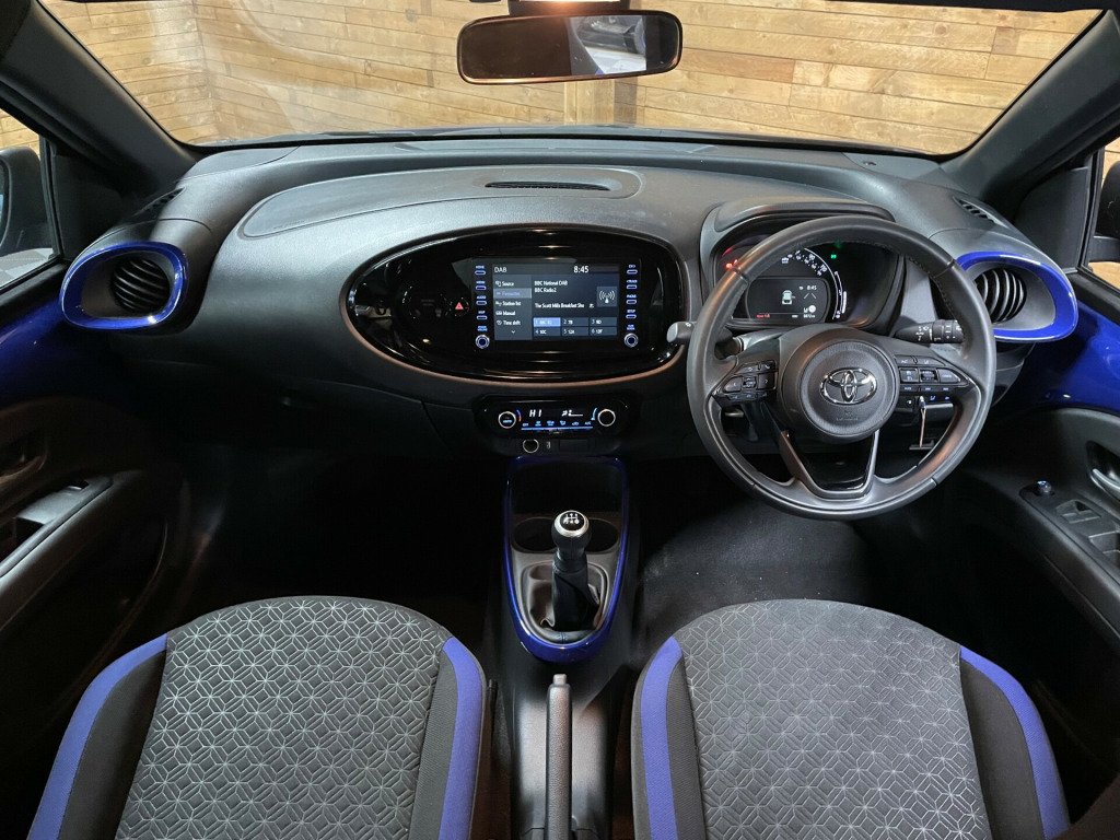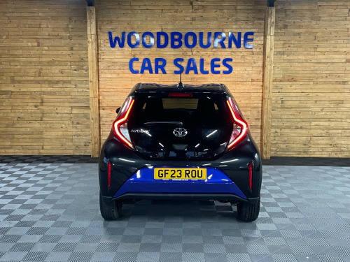 This 2023 Toyota Aygo X 1.0 VVT-i Edge Hatchback is a sleek and efficient car, with only 5100 miles on the clock and powered by a petrol engine. It comfortably seats 4 with 5 doors for easy access. ULEZ compliant, this Euro 6 vehicle is both stylish and environmentally friendly. The exterior features 18in Alloy Wheels, Automatic Headlight Cut-Off, Black Door Moulding, and Black Wheel Arch Moulding, while inside you'll find Chrome Interior Door Handles for a touch of luxury. With its manual transmission it is a fantastic car for a small family. All of our vehicles go through a detailed mechanical and safety inspection and are fully serviced with a 12 month MOT with no advisories prior to collection., in alloy wheels - 4-double-spoke - bi-tone dark grey - machined-face, automatic headlight cut-off, black insert on steering wheel, seats - 50-50 split folding rear, bluetooth connectivity, dab digital radio, smartphone integration - apple car play and android auto, usb connector, hac - hill start assist control, reversing camera, apple/android car play