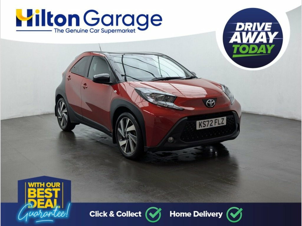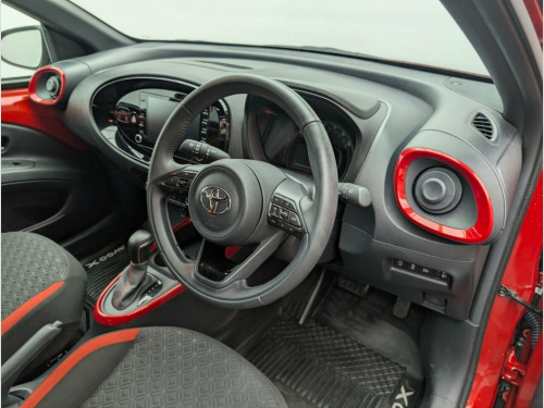 Great looking Toyota Aygo in Red with Cruise control - DAB Radio - Bluetooth - 18" Alloy Wheels - Climate Control - Privacy Glass Service History: 10/07/2023 at 4k, 05/12/2023 at 5k, 25/11/2024 at 9k, 24/09/25 at 11431 miles. Compact and stylish, the Toyota Aygo X Edge features a 1.0L petrol engine with 72 PS and x-shift automatic. Euro 6 compliant with start/stop, this 5-door hatchback offers agile handling, modern tech, and great efficiency for city driving. 18in Alloy Wheels - 4-Double-Spoke - Bi-, 3-Spoke Leather Steering Wheel, 4.2in Colour Multi-Information Display S, 8in Toyota Touch Multimedia System, ABS - Anti Lock Braking System with Emer, Adjustable Speed Limiter -ASL- Switch on, Analogue Speedometer, Audio Switches on Steering Wheel, Auto Headlights, Auto Wipers, Automatic Air Conditioning, Automatic Headlight Cut-Off, Black Door Moulding, Black Insert on Steering Wheel, Black Wheel Arch Moulding, Bluetooth Connectivity, Boot Door Scuff Plate, Centre Room Light, Child Safety Door Locks, Chrome Interior Door Handles, Chrome Surround on Air Conditioning Butt, Clean Air Filter, DAB Digital Radio, Digital Tachometer, Door Handles - Body C