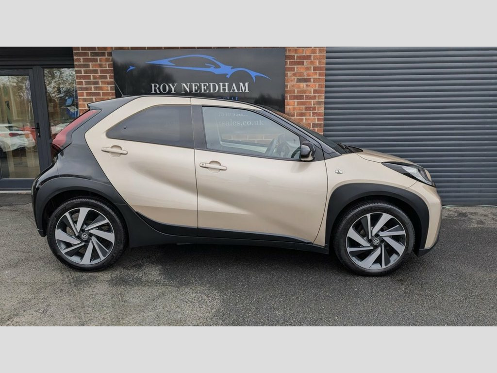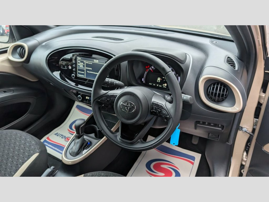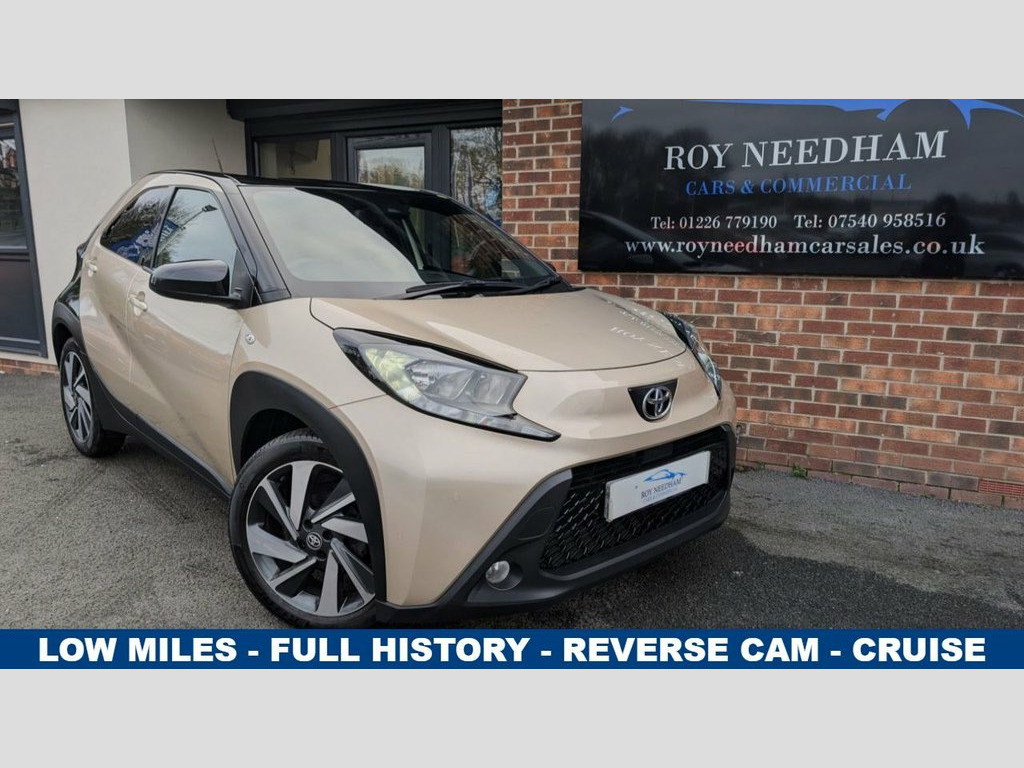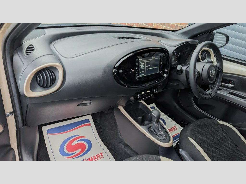 THIS 2022 / 72 TOYOTA AYGO X AUTO HAS A LOW MILEAGE AND A FULL SERVICE HISTORY!! IT COMES WITH REVERSE CAMERA, AIR CONDITIONING, CRUISE CONTROL, BLUETOOTH, DAB RADIO, ELECTRIC DOOR MIRRORS/WINDOWS AND MORE! IT HAS BEEN SERVICED AT 5046, 9529, 10726 AND JUST NOW BY US AT 17576!! FULLY PREPARED AND READY TO DRIVE AWAY WITHIN THE HOUR! WE OFFER 3 MONTHS PARTS AND LABOUR WARRANTY SUBJECT TO CRITERIA. FINANCE AVAILABLE SUBJECT TO STATUS. BOOK YOUR APPOINTMENT TODAY BY GIVING US A CALL ON 01226 779190. Intelligent Adaptive Cruise Control Swit, Automatic Air Conditioning, Bluetooth Connectivity, Power-Adjustable - Electric - Heated Doo, 18in Alloy Wheels - 4-Double-Spoke - Bi-, Auto Headlights, Brass Gold with Black Roof, Fabric - Black and Brass Gold, USB Connector, DAB Digital Radio, Privacy Glass - Rear Side Windows