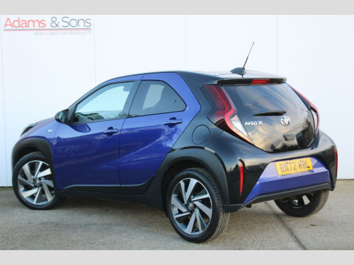 Great example of this super low mileage 2022 (22 plate registered), Toyota Aygo X 1.0 petrol Edge Automatic 5 door manual finished in striking Juniper Blue against black over grey Juniper Blue contrasting interior. This car is complimented to both Toyota keys, original book packs and a full service history record with Toyota containing two entries. This car boasts having only one owner from new and a generous equipment level. Specification includes rear parking camera, smartphone mirroring connectivity with apple carplay/Andriod Auto, DAB radio, bluetooth telephone with media input (AUX/USB), cruise control, air conditioning, remote central locking, and impressive low running costs. Low rate Hire Purchase and extended warranty plans available upon request (subject to applicant) here at Adams and sons we do not charge any dealer administration fees and pride ourselves on paramount customer service. All our cars are price checked daily to ensure you get the right car at the right price- Established business since 1932. Adams & Sons make every effort to ensure vehicle details on this listing are correct. However, the vehicle specifications can sometimes differ from that shown. Please satisfy yourself that a vehicle has a specific feature that is important to you before purchasing. Our staff will be happy to assist you.