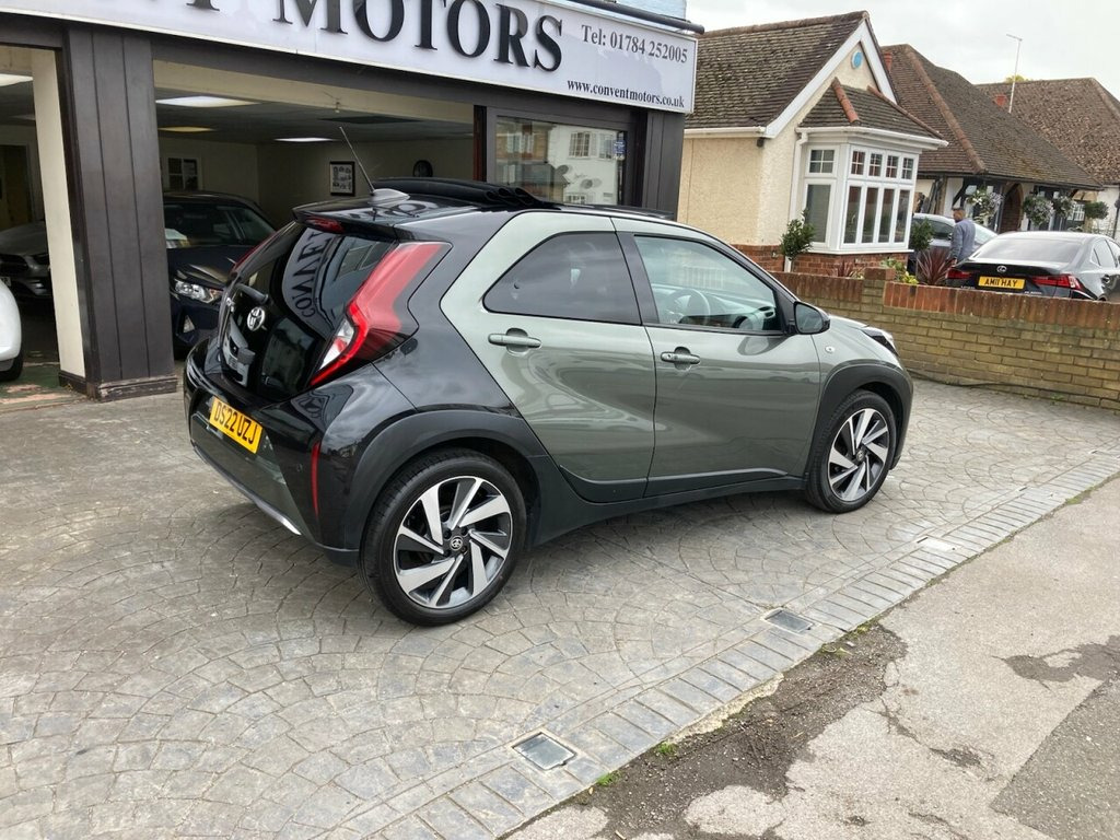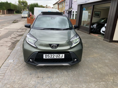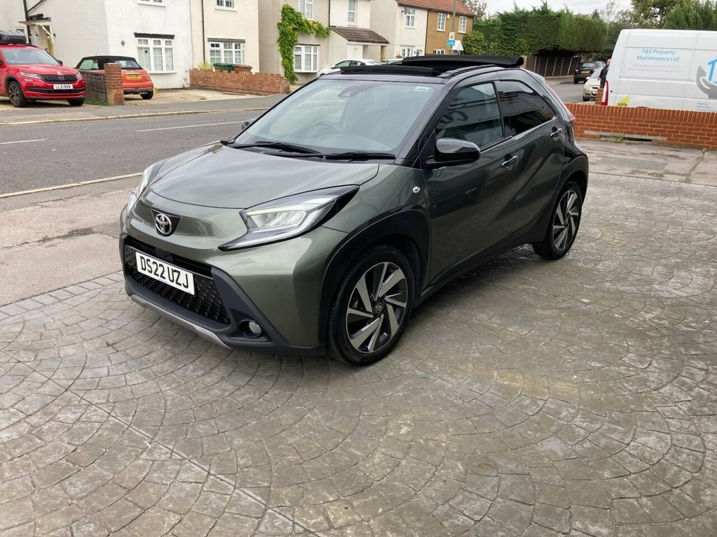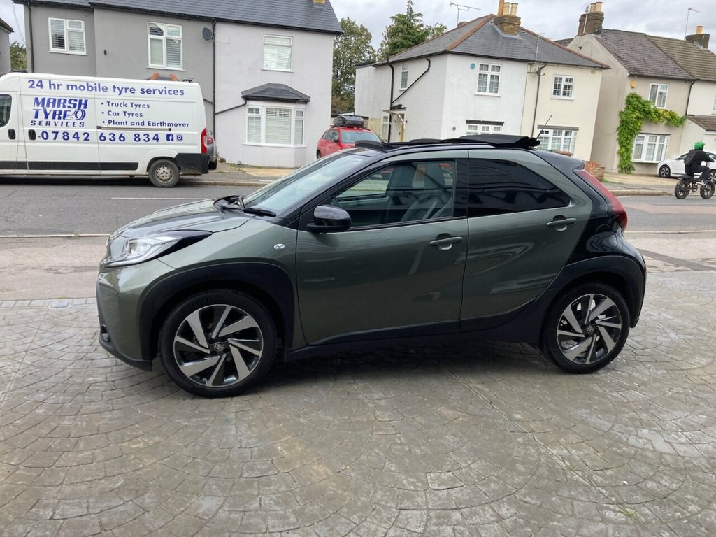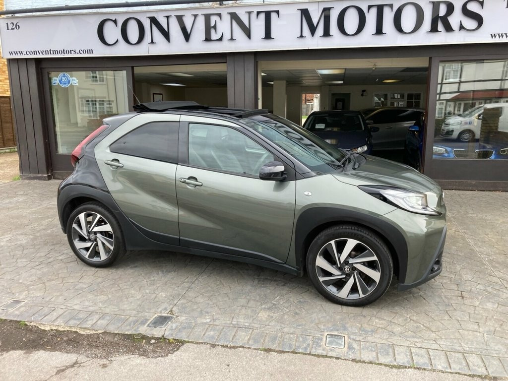 STUNNING 1 OWNER AYGO X IN CARDAMOM GREEN METALLIC, 3 X SERVICES AT TOYOTA LAST SERVICED 26TH JULY 2025 AT 24,466 MILES, CANVAS ELECTRIC SUNROOF, SATELLITE NAVIGATION, WIRELESS APPLE CAR PLAY AND PHONE CHARGING PAD, CLIMATE CONTROL AIR CONDITIONING, PRIVACY GLASS, ALLOY WHEELS, LEATHER MULTI FUNCTION STEERING WHEEL, DYNAMIC RADAR CRUISE CONTROL, PRE COLLISION WARNING, LANE KEEP ASSIST, TRACTION CONTROL, A.B.S., ELECTRIC WINDOWS, ELECTRIC HEATED MIRRORS, REMOTE CENTRAL LOCKING ALARM WITH 2 KEYS, HPI CLEAR, REVERSING CAMERA WITH FRONT AND REAR PARKING SENSORS, TWIN FRONT PLUS SIDE AIRBAGS 18in Alloy Wheels - 4-Double-Spoke - Bi-, 3-Spoke Leather Steering Wheel, 4.2in Colour Multi-Information Display S, 9in HD Toyota Smart Connect Multimedia S, ABS - Anti Lock Braking System with Emer, Adjustable Speed Limiter -ASL- Switch on, Analogue Speedometer, Audio Switches on Steering Wheel, Auto Headlights, Auto Wipers, Automatic Air Conditioning, Automatic Headlight Cut-Off, Automatic High Beam On-Off Switch, Black Door Moulding, Black Surround on Front Fog Lights, Black Wheel Arch Moulding, Bluetooth Connectivity, Body Coloured Insert on Steering Wheel, Boot Door Scuff Plate, Centre Room Light, Child Safety Door Locks, Chrome Interior Door Handles, Chrome Surround on Air Conditioning