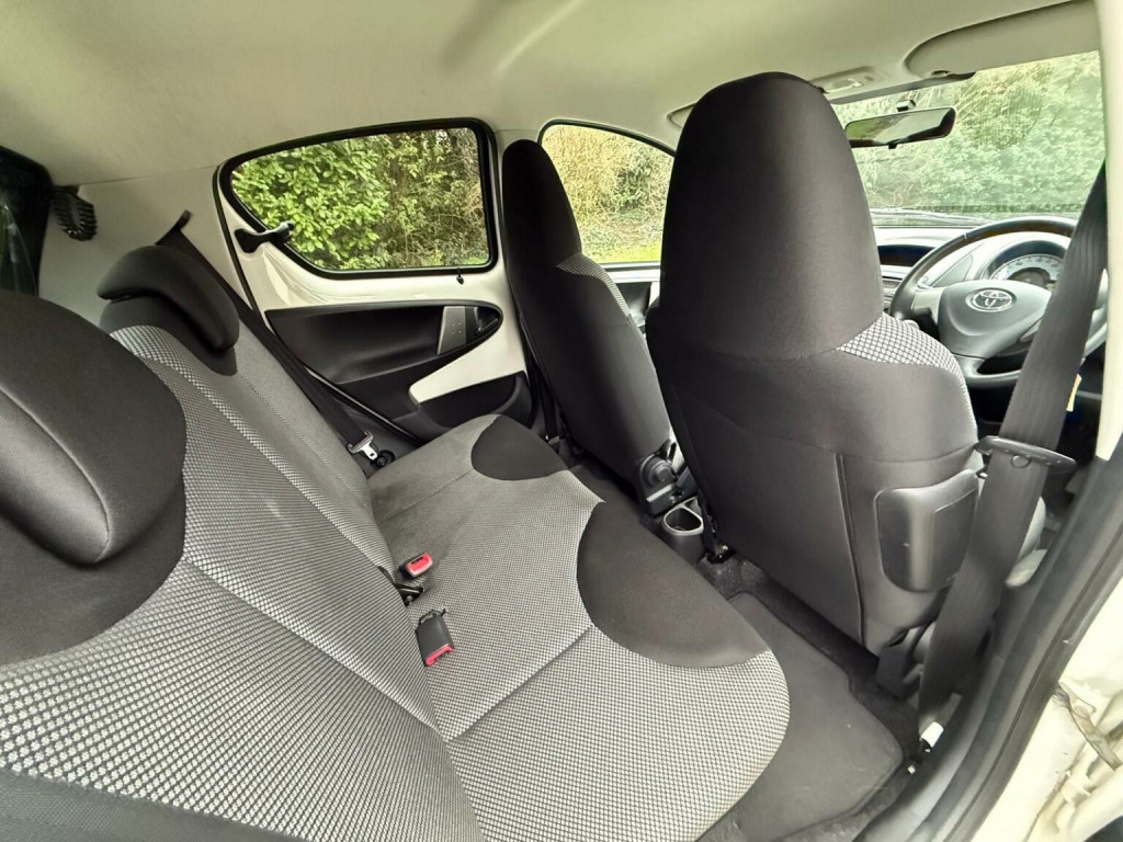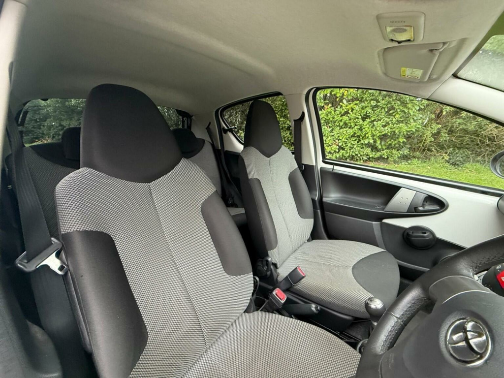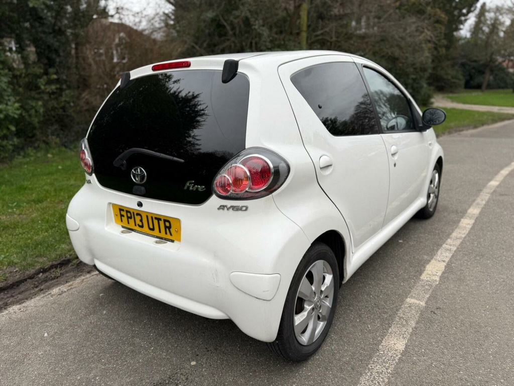 Discover this 2013 Toyota AYGO VVT-i Fire with exceptionally low mileage for its year, having covered just 38629 miles. This compact and stylish car is powered by an efficient 1.0L petrol engine, making it a practical choice for everyday driving. With its MOT valid until November 2026, you can enjoy peace of mind knowing it is roadworthy for the foreseeable future.The AYGO VVT-i Fire stands out with its impressive fuel economy, achieving a remarkable 66 miles per gallon. This efficiency, combined with its low CO2 emissions and low insurance group rating, means this vehicle is designed to be economical to run. These factors collectively indicate that this Toyota AYGO offers a more cost effective ownership experience compared to many other vehicles in its class.. 14in Alloy Wheels - 6 Spoke, 3-Spoke Leather Steering Wheel, ABS - Anti Lock Braking System, Accessory Power Socket - Front, Air Recirculation Function, Airbags - Driver, Airbags - Front Passenger, Airbags - Front Passenger Cut-Off Switch, Body Coloured Door Mirrors, Bumpers - Body Coloured, Child Protection Locks, CSC - Cornering Stability Control, Cupholders - Front, Daytime Running Lights - LED, Digital Clock, Digital Odometer with Trip Meter, Door Handles - Body Coloured, Door Inserts - Moulded, Doors - 3 Position Opening, Driver and Front Passenger Sun Visors, EBD - Electronic Brakeforce Distribution, Electric Windows - Front, Engine Management Warning, Front Fog Lights, Front Grille - Mesh Effect, Front Wipers - Twin Speed and Fixed Intermittent, Fuel Indicator with Low Fuel Warning, Full Size Spare Wheel, Fully Trimmed Boot, Glass - Green Tinted, Headlights - Electronic Levelling, Headrests - Front Intergrated, Headrests - Rear Height Adjustable, High Mounted Rear Brake Light, Interior Light, ISOFIX Child Restraint System, Leather Gear Shift Knob, Lights On Warning, MacPherson Strut Front Suspension, Oil Maintenance Warning Light, Power Assisted Steering - Speed Sensitive, Radio Aerial - Roof Mounted, Radio and CD Player with Aux In, RDS with PTY and EON Settings, Rear Door Storage Bins, Rear Parcel Shelf - Removable, Rear Pop Out Windows, Rear Privacy Glass, Rear Storage Bins, Rear Wipers - Continual Sweep, Red Tone Rear Light Cluster, Remote Central Locking, Seat Belt Warning - Driver, Seats - 2 Piece Folding Rear, Seats - 50-50 Split Folding Rear, Seats - Slide and Recline Adjustable Drivers, Seats - Slide and Recline Adjustable Front Passengers, Side Impact Beams, Steering Column - Adjustable Stepless Tilt, Steering Column Lock, Steering Wheel - Leather, Steering Wheel 3-Spoke with Leather Trim, Storage - Central Console, Storage Bins - Front Doors, Tachometer, Torision Beam Rear Suspension, Transponder Key Engine Immobiliser, Vanity Mirrors - Driver and Front Passenger with Cover, Vehicle Parts Marking - Major Parts Traceable to VIN, Water Temperature Indicator.